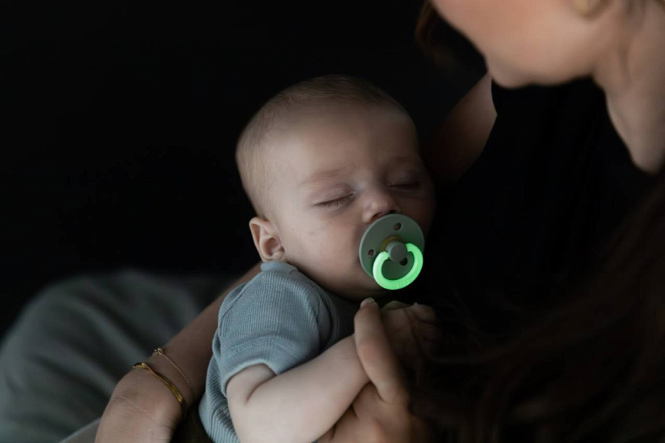 Соска-пустышка латексная ночная BIBS Colour Glow 6+ мес., цв. black