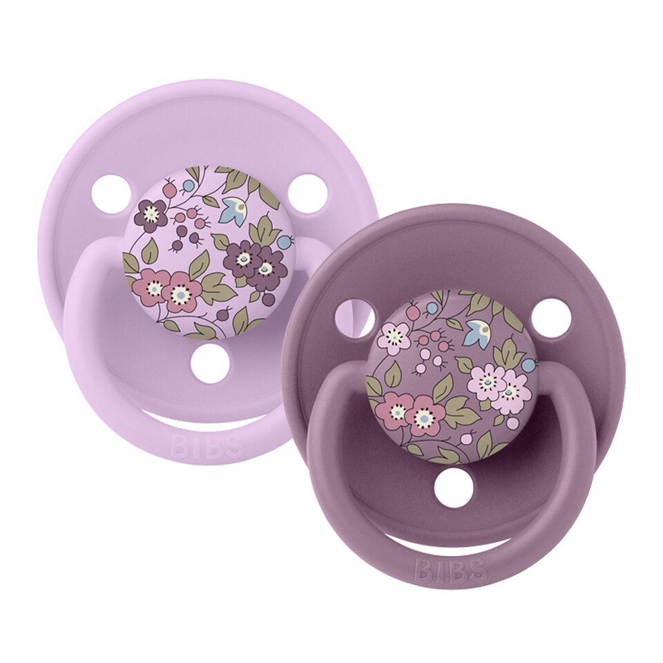 Набор из 2-х сосок-пустышек BIBS De Lux с цветочным принтом Liberty. Все соски разработаны и сделаны в Дании и продаются уже более 40 лет по всему миру. Сосок у пустышки сделан из силикона, а насадка (шилдик) и ручка соски-пустышки сделаны из безопасного полипропилена.