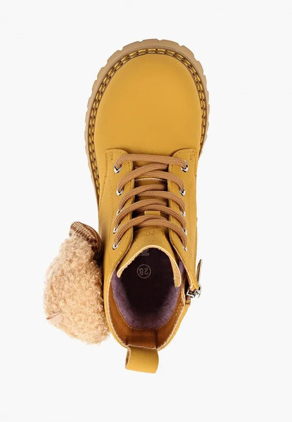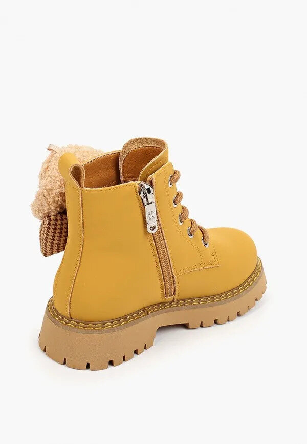 Ботинки выполнены из натуральной и искусственной кожи. Детали: шнуровка на подъеме для регулирования объема, застежка на молнию сбоку для удобства обувания, подкладка из гигроскопичного материала с вкраплениями угля обеспечивает эффективное поглощение влаги и неприятных запахов, эргономичная вкладная стелька для эффективного поддержания свода стопы, профилактики плоскостопия и деформации, снижения утомляемости ног и правильного формирования детской стопы, микропористый материал основания стельки служит для эффективного поглощения вибраций и снижения ударной нагрузки, резиновая подошва.