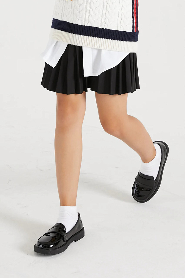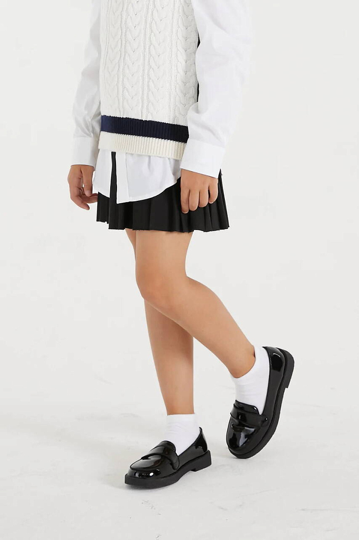 Черные лоферы Bobby занимают особое место в нашей коллекции. В первую очередь, это идеальная обувь для школьных образов. И, во-вторых, Bobby — это лоферы для стильных и элегантных городских девочек. Изготовленные из натуральной лакированной кожи лоферы прекрасно сочетаются с юбками в складку, с укороченными брючками любого объема, а также с джинсами.