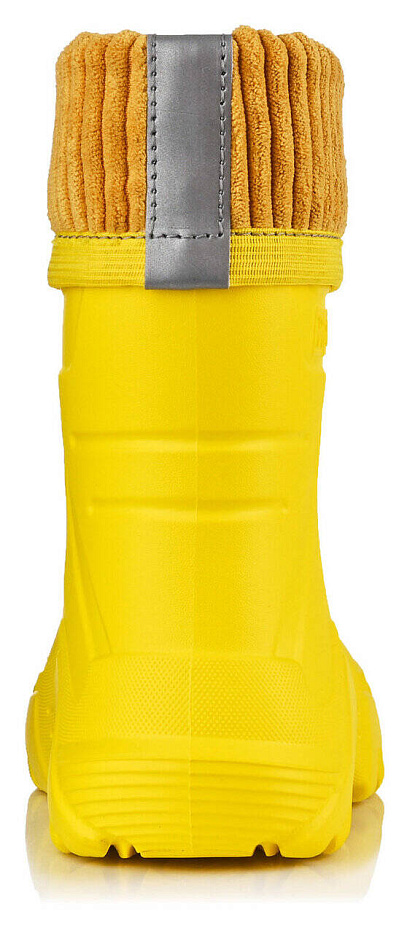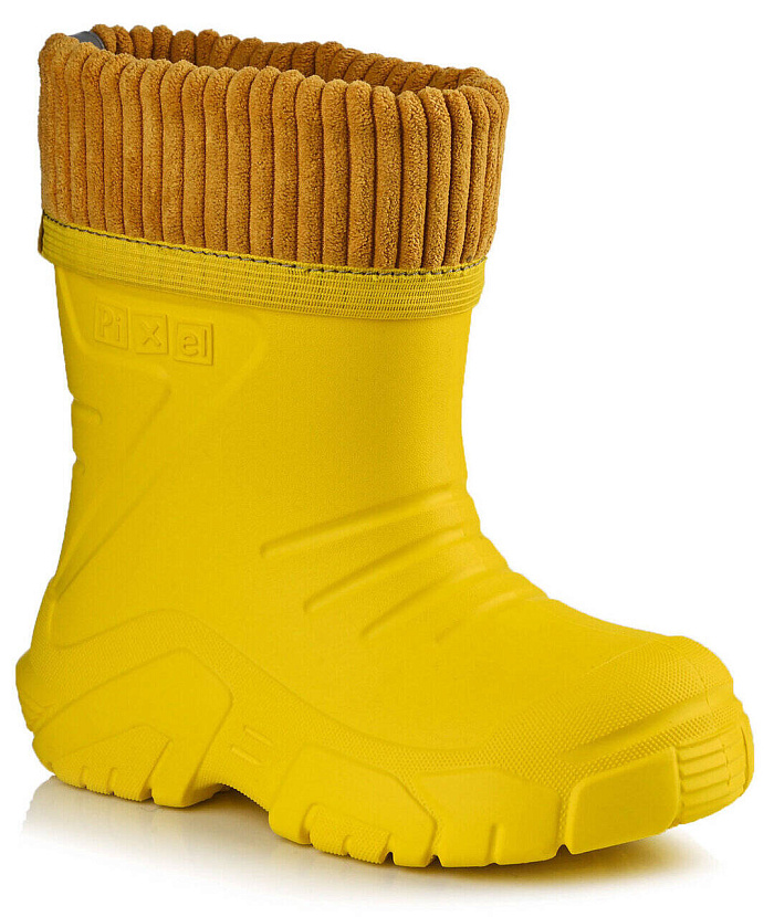 Сапоги Pixel Dr.Rain FLEECE line — это сапоги, внешний вид которых знаком розничным покупателям, но сапог Pixel Dr.Rein отличается биомеханическими свойствами и помогает ребёнку уверенно ходить. Линии на союзке продуманы так, чтобы голенище лёгко сгибалось, следуя за движениями ноги. Комбинированный протектор на подошве хорошо сцепляется с поверхностью, боковые ступеньки не собирают грязь в подошве. Ступенчатый выступ Safe Fun помогает легко снимать сапоги, и амортизирует удары, когда ребёнок активно болтает ногами. Оригинальные линии создают современный силуэт, а сочетание гладкой и шероховатой фактур привлекают внимание, завершает композицию сапога насыщенный жёлтый цвет. Съёмный чулок с вельветовым отворотом создаёт ощущение безопасности и комфорта: - на отвороте пришита светоотражающая лента и ребёнок будет заметен для едущих по тёмным дворам водителей; - ступня ребёнка встречается с мягкой флисовой тканью, стелька дублирована поролоном достаточной толщины, чтобы амортизировать ударную волну шага; - сн