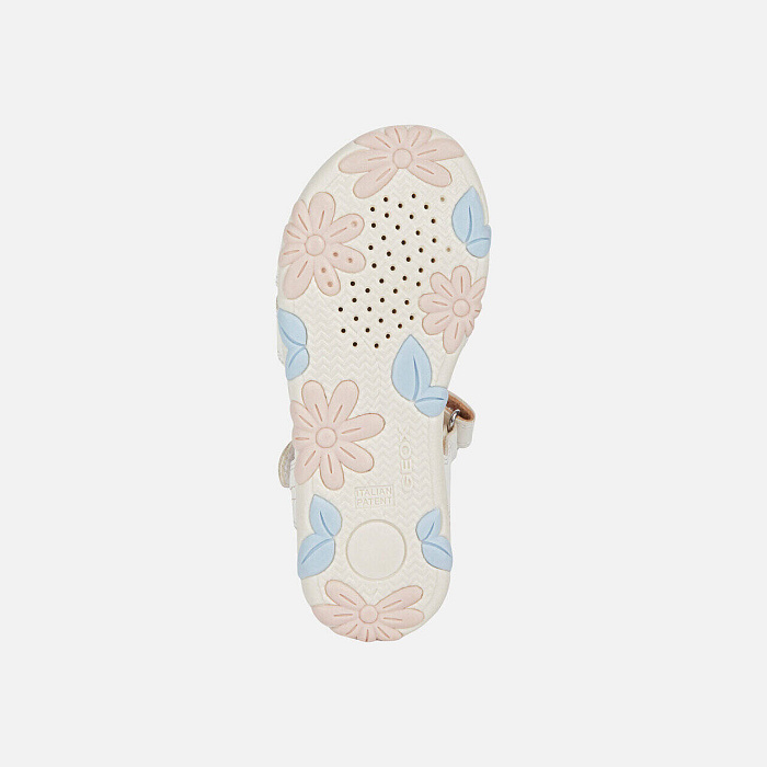 Удобные дышащие сандалии для девочек с энергичным ощущением и женственной эстетикой. Они выполнены в сдержанной белой и бледно-розовой цветовой гамме, верх выполнен из материала с эффектом кожи, украшенного красивыми романтическими цветами. На Гаити практичная застежка-липучка, которая облегчает вход ногой и не требует усилий при повседневном использовании.