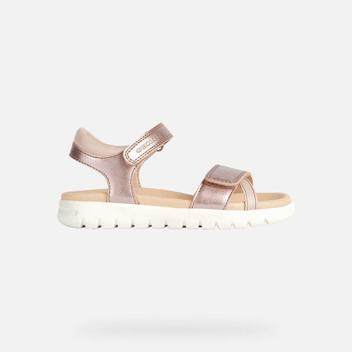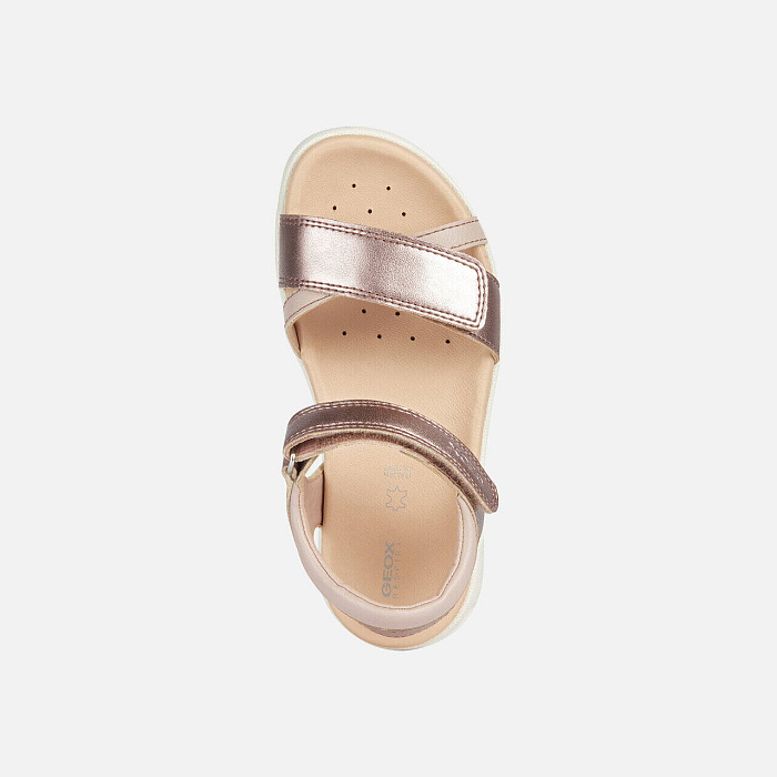 Легкие удобные сандалии с открытым носком для девочек с непринужденной эстетикой и изысканностью. Эта версия Soleima в палитре старинных роз мгновенно украсит повседневную одежду своим блестящим женственным дизайном. Их легко надевать и регулировать, они изготовлены из материала с перламутровым эффектом кожи и простого материала с эффектом кожи.