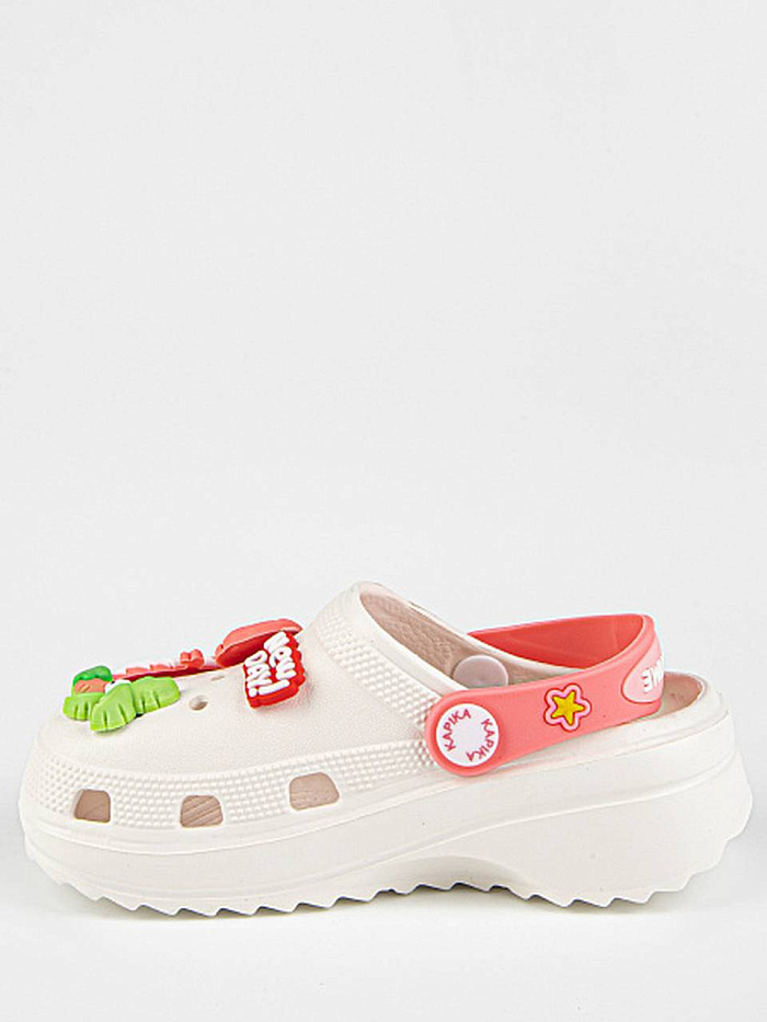Каждая девочка мечтает о таких стильных пляжных сабо.Модель выполнена из современного легкого и износостойкого материала ЭВА и и дополнена съемным декоративным элементом. Они легкие, мягкие и очень удобные. По сравнению с аналогами износоустойчивые, гипоаллергенные и без запаха. Имеют нескользящую подошву, в них будет безопасно на скользком полу. Легко моются, не впитывают влагу и быстро сохнут. Благодаря вентиляционным отверстиям сабо проветриваются, ноги дышат и не потеют. Ремешок надежно фиксирует ножку. Его также можно повернуть, чтобы получились просто шлепки.