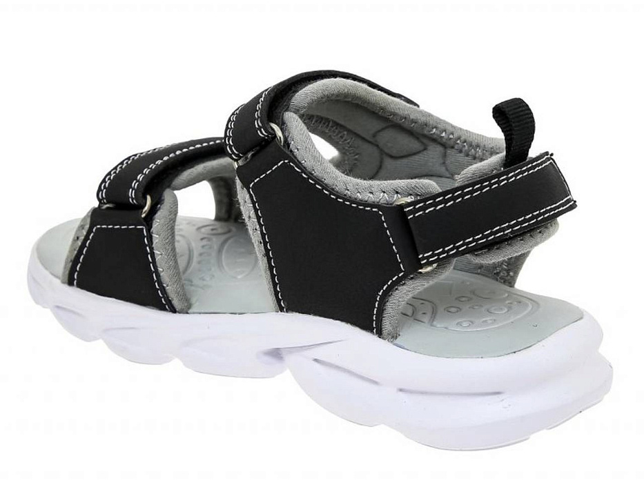 Детские туфли летние для мальчиков KENKA светящиеся. Изготовлены из искусственной высококачественной кожи. Анатомическая стелька препятствует формированию плоскостопия и выполнена из ЭВА, что позволяет использовать данную обувь для водных прогулок.. Ремешки с липучками надежно фиксируют изделие на ноге и позволяют регулировать высоту подъема.