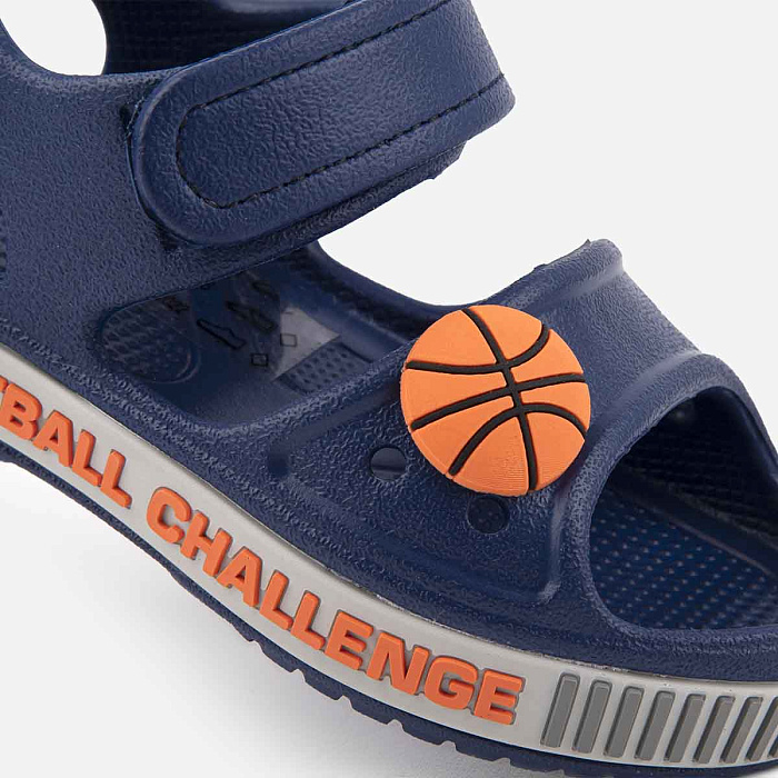 Открытые пляжные сандалии наш хит! В модели есть липучка, которой можно отрегулировать посадку на ножке, а также съемная декор-пуговица в виде баскетбольного мяча. Какой мальчишка не будет в восторге от такой обуви с классным дизайном!?