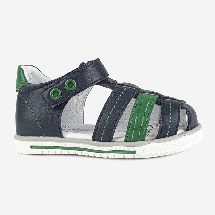 Сандалий для мальчика с верхом из высокопрочной искусственной кожи. Наличие жесткого задника и подсводника обеспечивает правильную фиксацию стопы и профилактический эффект для всего опорно-двигательного аппарата. Натуральная кожа в подкладке и стельке обеспечит комфортное ношение в течении дня. Застежки- липучки позволяют регулировать обувь по полноте. Долговечная ТЭП подошва продлевает срок службы обуви.