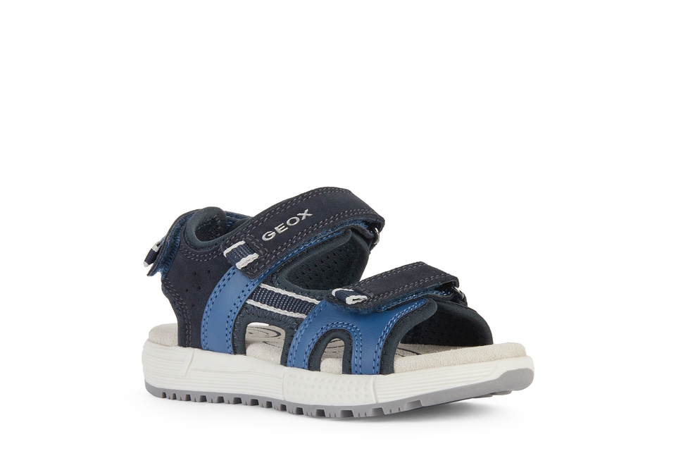 Удобные дышащие сандалии с открытым носком для мальчиков в спортивно-повседневном стиле. Полностью регулируемые, с практичной застежкой на липучке, Alben изготовлены из лайкры и замши в универсальной темно-синей и военно-морской цветовой гамме. Они обеспечивают превосходный амортизирующий эффект и обладают энергичной эстетикой, что делает их идеальным выбором для летних приключений.