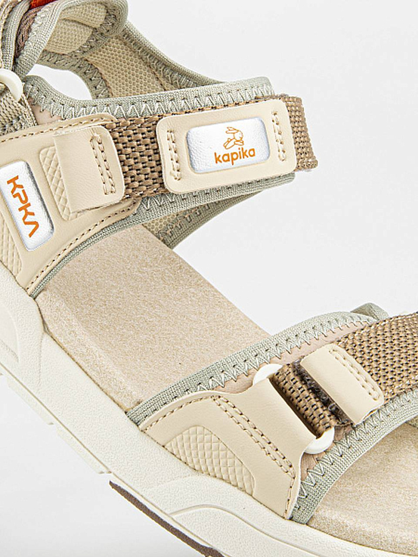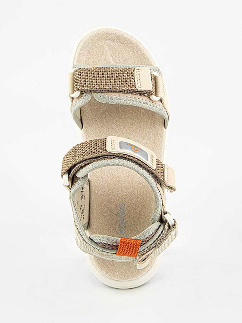 Удобные спортивные сандалии бежевого цвета из высокопрочного текстиля и экокожи. Стелька выполнена из натуральной кожи. Застежки - липучки позволяют регулировать обувь по полноте. Подошва из полиуретана отличается отличной амортизацией и легкостью.