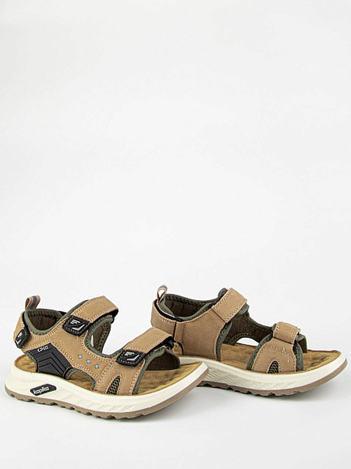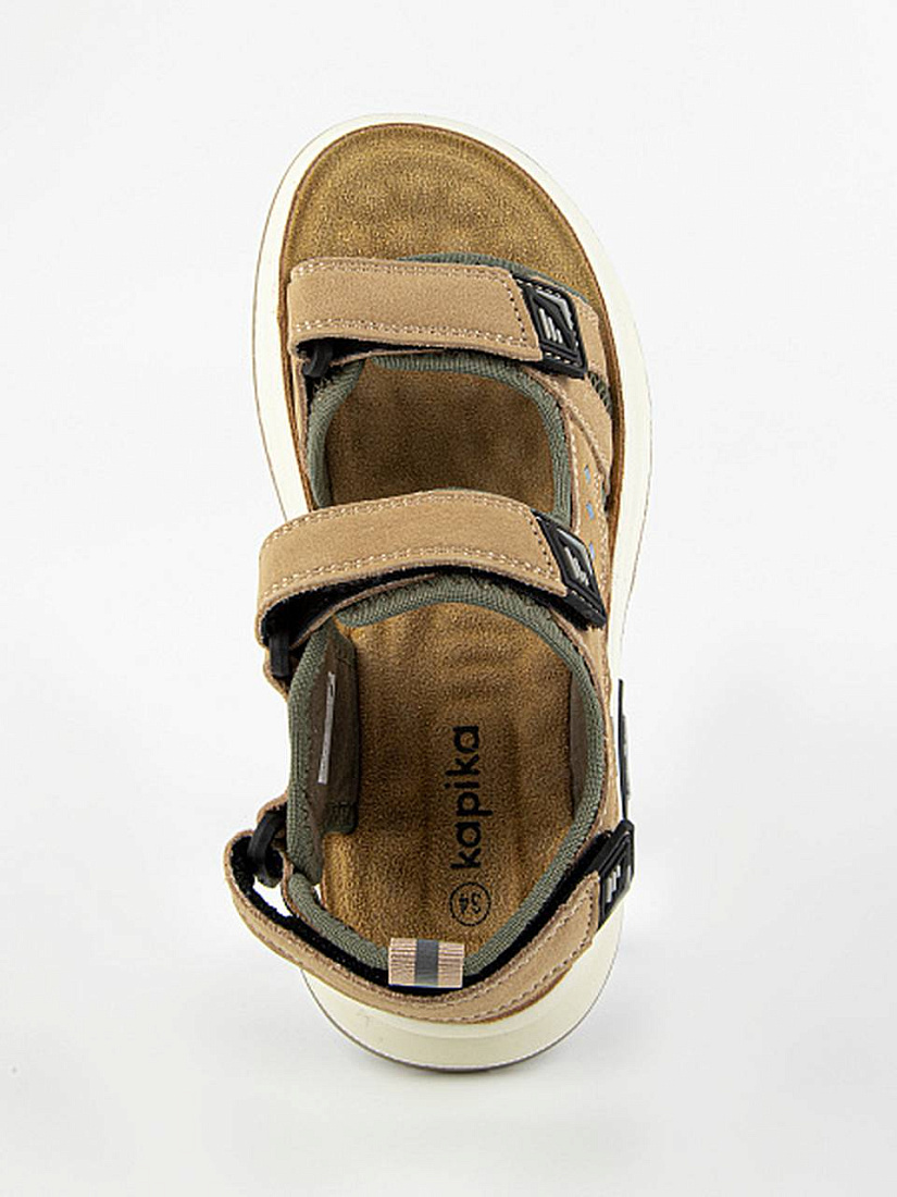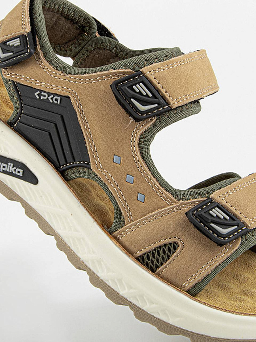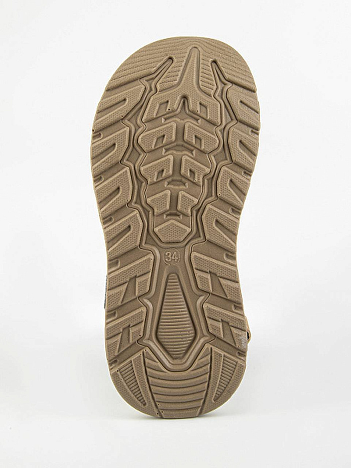 Спортивные открытые сандалии коричневого цвета на облегченной амортизирующей подошве из полиуретана. Стелька выполнена из натуральной кожи. Текстильная подкладка с добавлением хлопка. Верх изделия выполнен из комбинации натуральной кожи и полимерного материала.