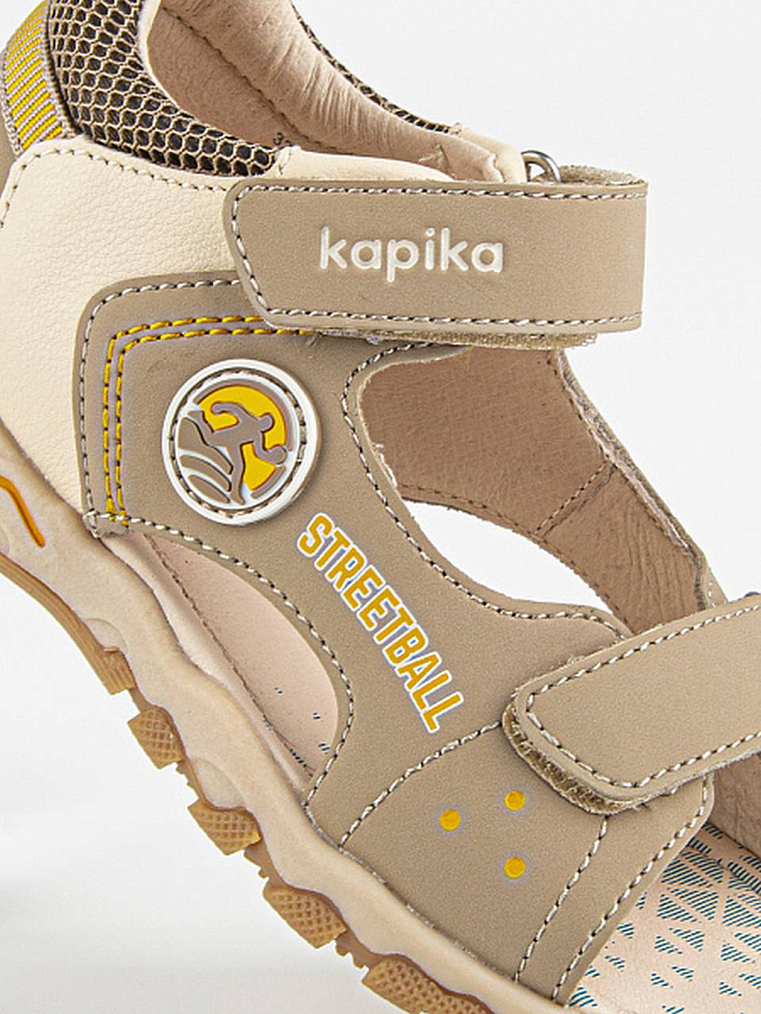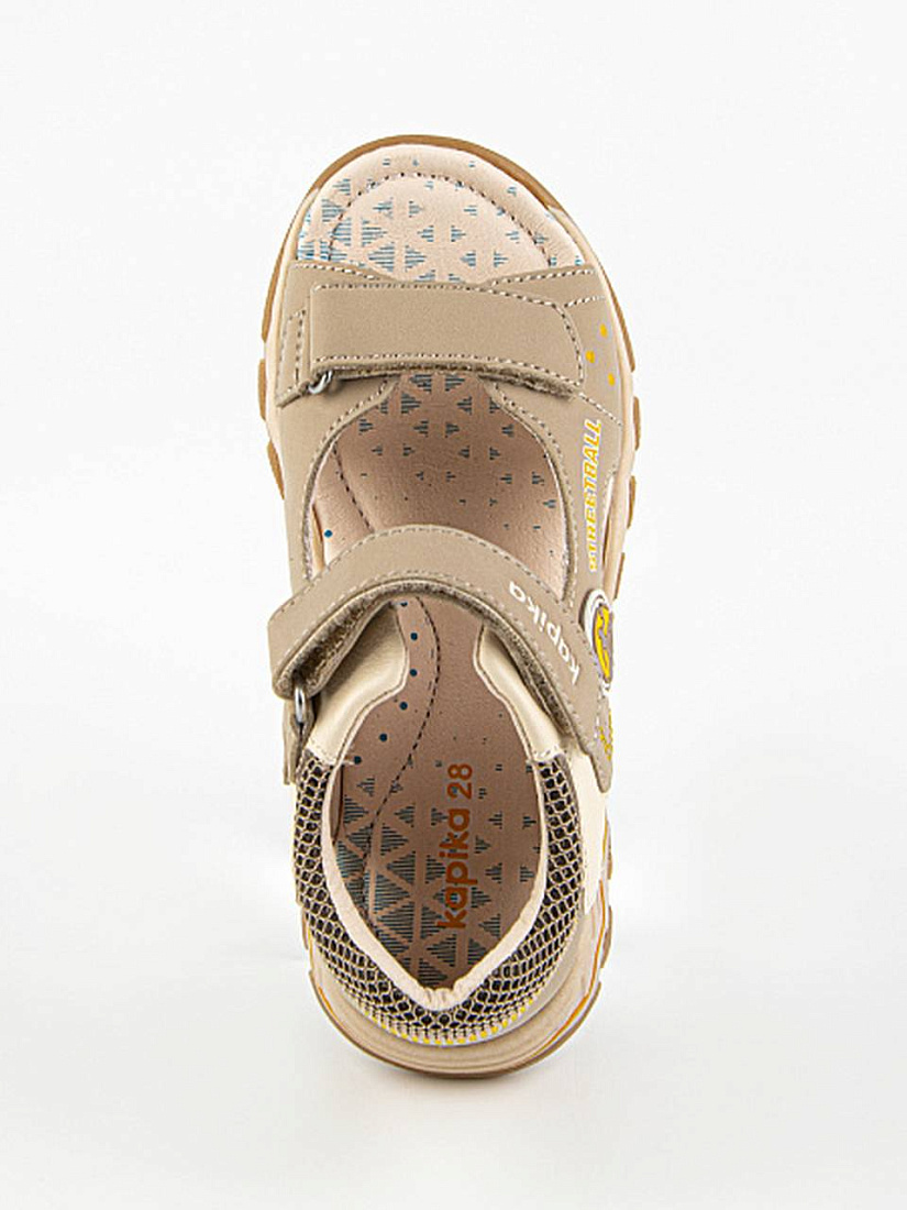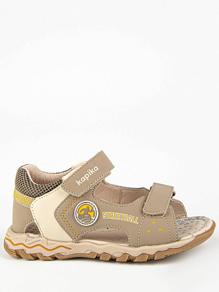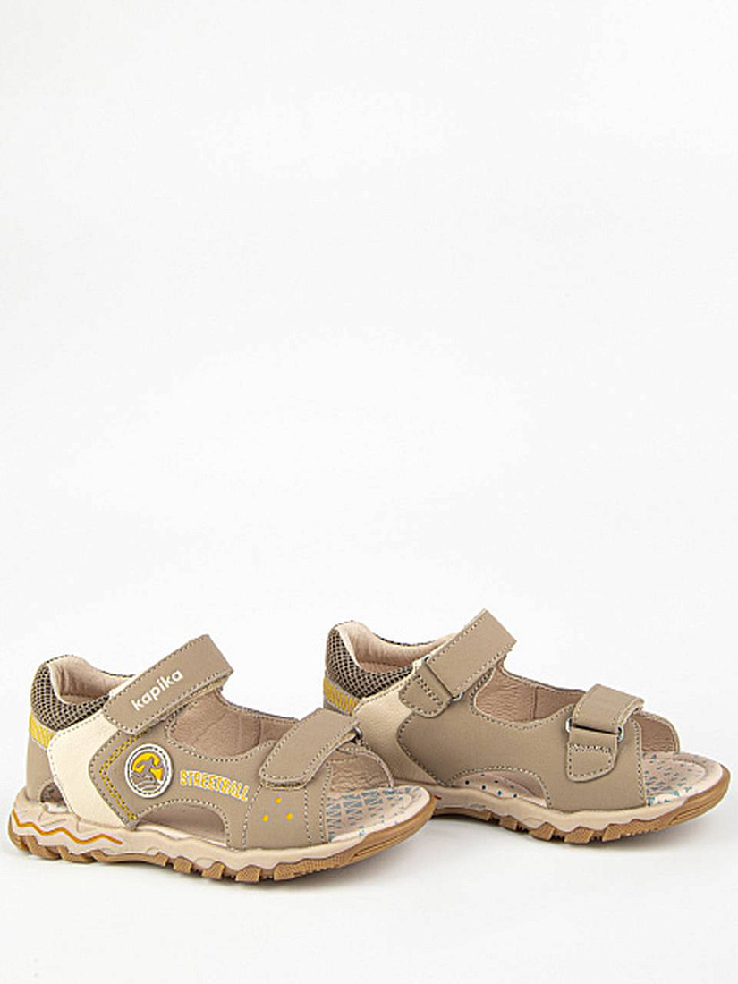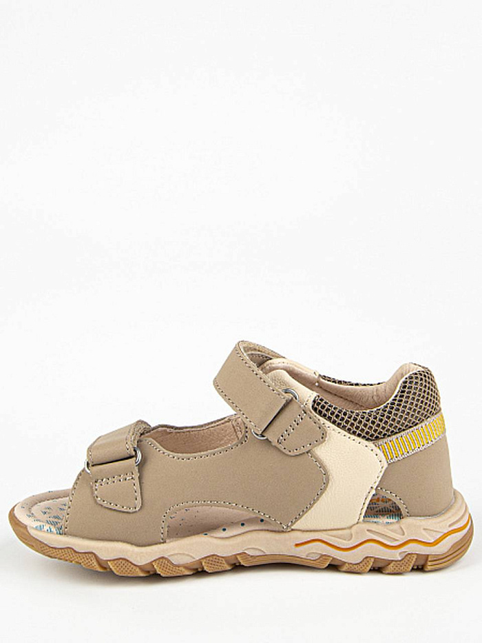 Сандалии для мальчика бежевого цвета с открытой носочной частью. Имеют жесткий задник и подсводник для правильной фиксации стопы. Подкладка и стелька из натуральной кожи обеспечивают комфорт при ношении в течение всего дня. Верх изделия выполнен из комбинации натуральной и экокожи. Долговечная подошва из ТЭП продлевает срок службы изделия.