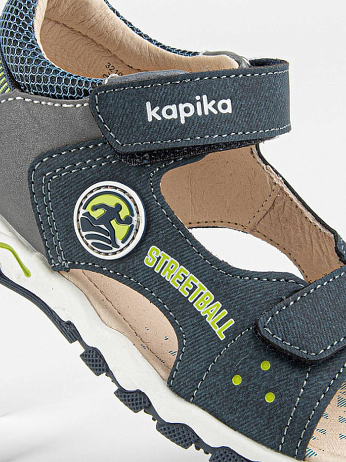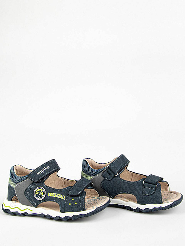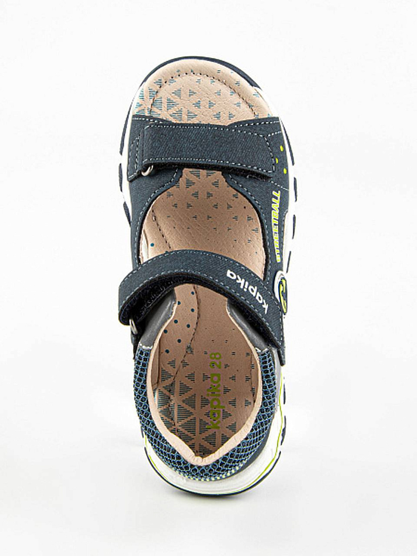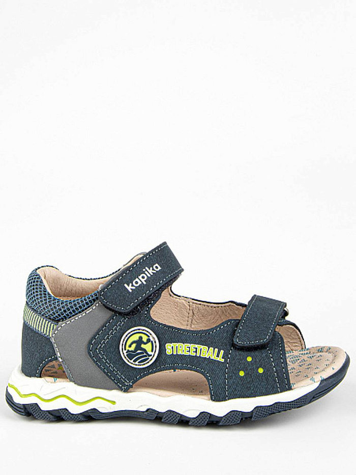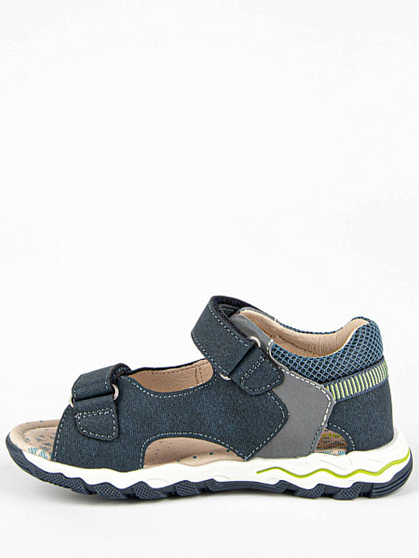 Сандалии для мальчика синего цвета с открытой носочной частью. Имеют жесткий задник и подсводник для правильной фиксации стопы. Подкладка и стелька из натуральной кожи обеспечивают комфорт при ношении в течение всего дня. Верх изделия выполнен из комбинации натуральной и экокожи. Долговечная подошва из ТЭП продлевает срок службы изделия.