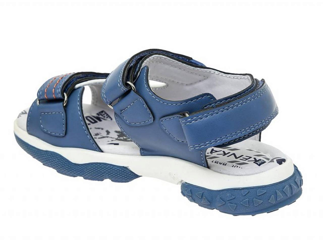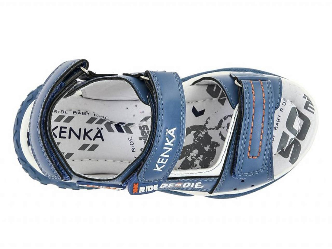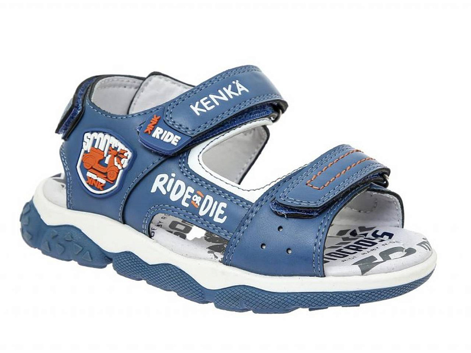 Детские туфли летние для мальчика KENKA. Изготовлены из искусственной высококачественной кожи. Анатомическая текстильная стелька препятствует формированию плоскостопия. Ремешки с липучками надежно фиксируют изделие на ноге и позволяют регулировать высоту подъема. Подошва изготовлена из облегченного, гибкого и прочного материала ТЭП