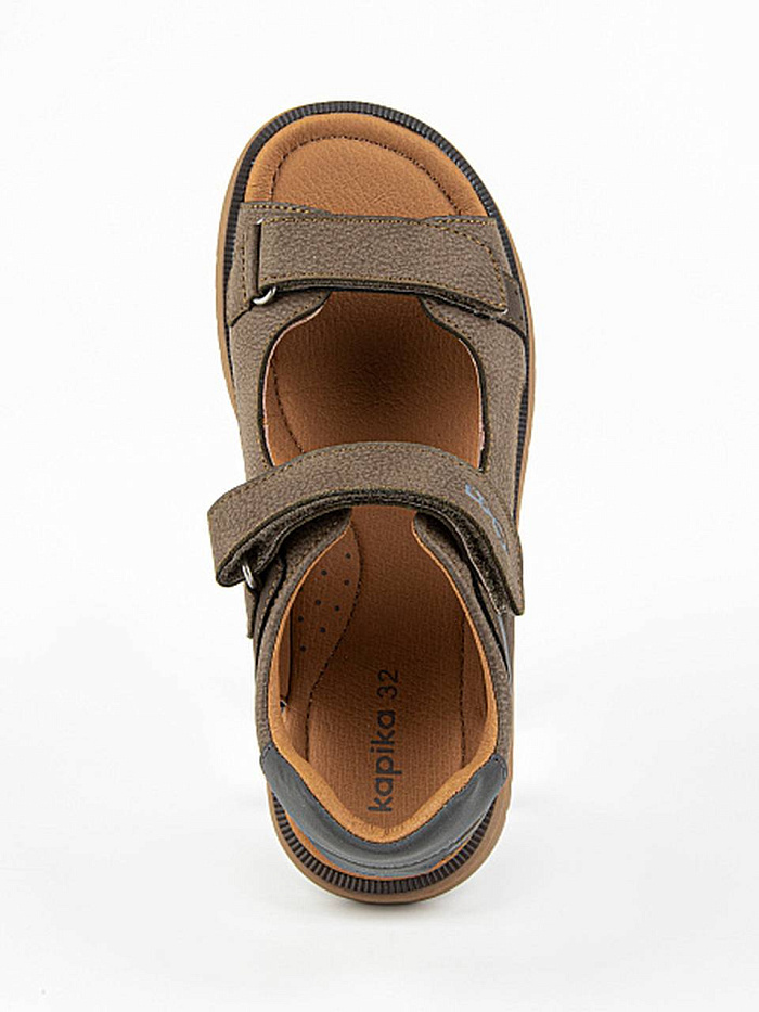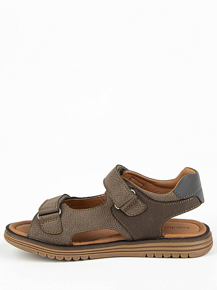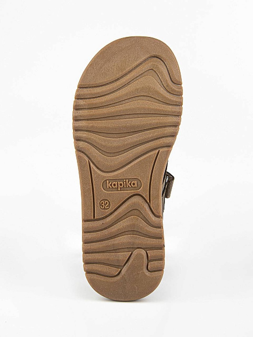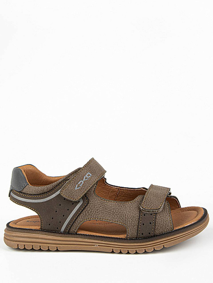 Лаконичные легкие сандалии коричневого цвета в спортивном стиле. Верх изделия выполнен из комбинации натуральной и экокожи. Стелька и подкладка из натуральной кожи. Прочная и долговечная подошва из термоэластопласта продлит срок службы обуви.