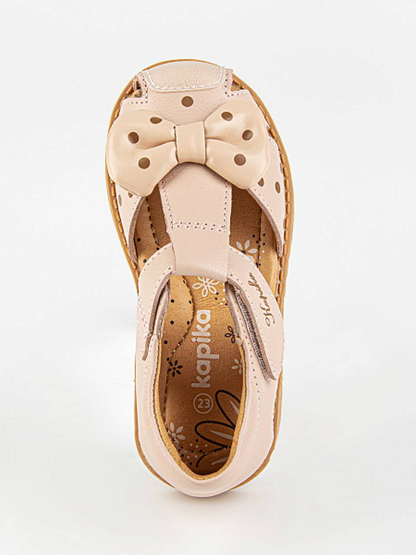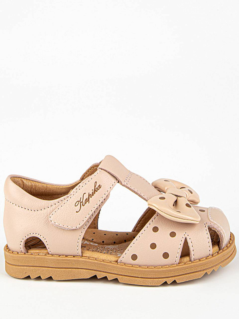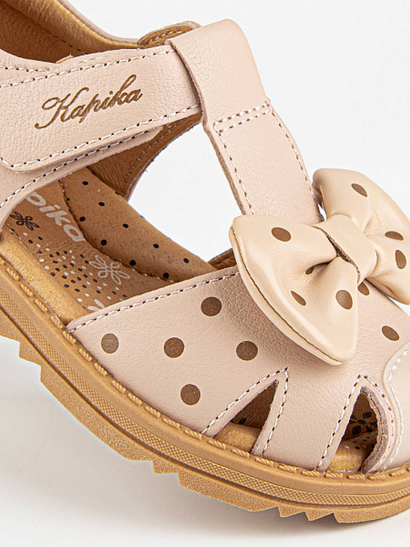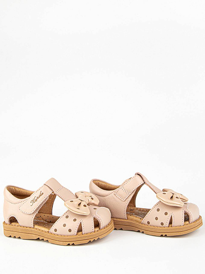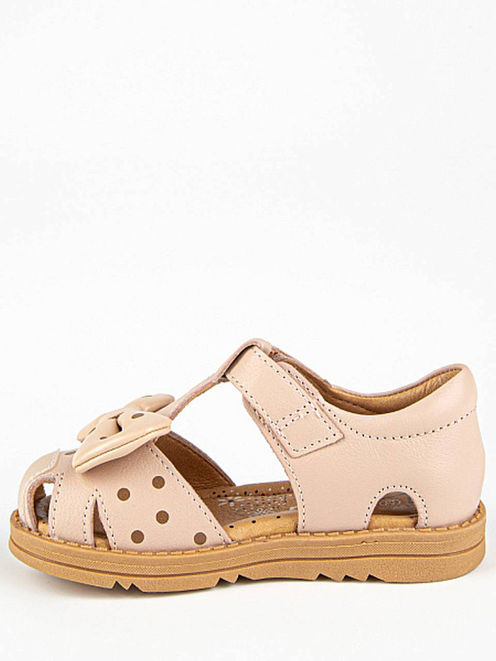 Закрытые сандалии в оттенке пыльная роза. Выполнены полностью из натуральной кожи. Внутри имеется подсводник, который поддерживает продольный свод стопы и обеспечивает правильное положение ноги ребенка при ходьбе. Подошва из термоэластопласта добавляет устойчивость.