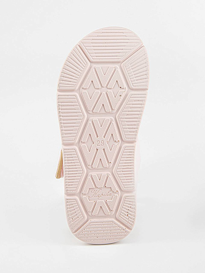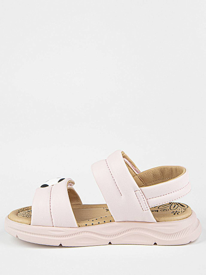 Открытые босоножки розового цвета, декорированные аппликацией. Стелька и подкладка выполнены из натуральной кожи, а верх изделия - из качественной экокожи. Комбинированная подошва из материалов ЭВА и резина обеспечивает легкость, гибкость и износостойкость.