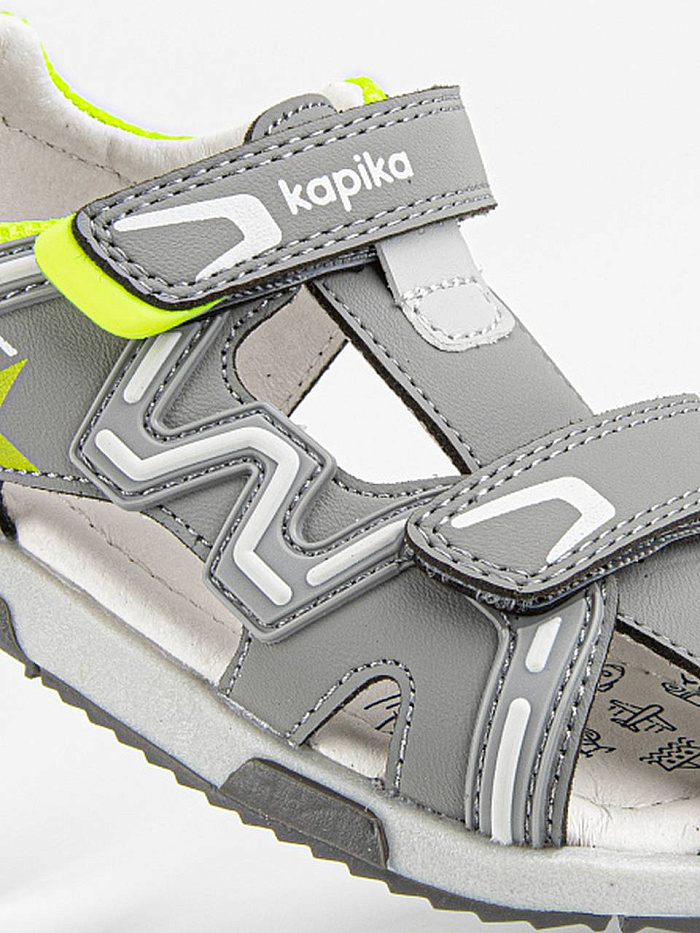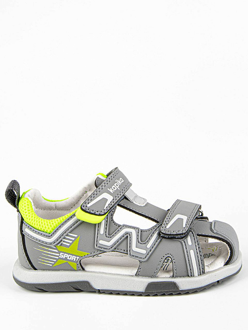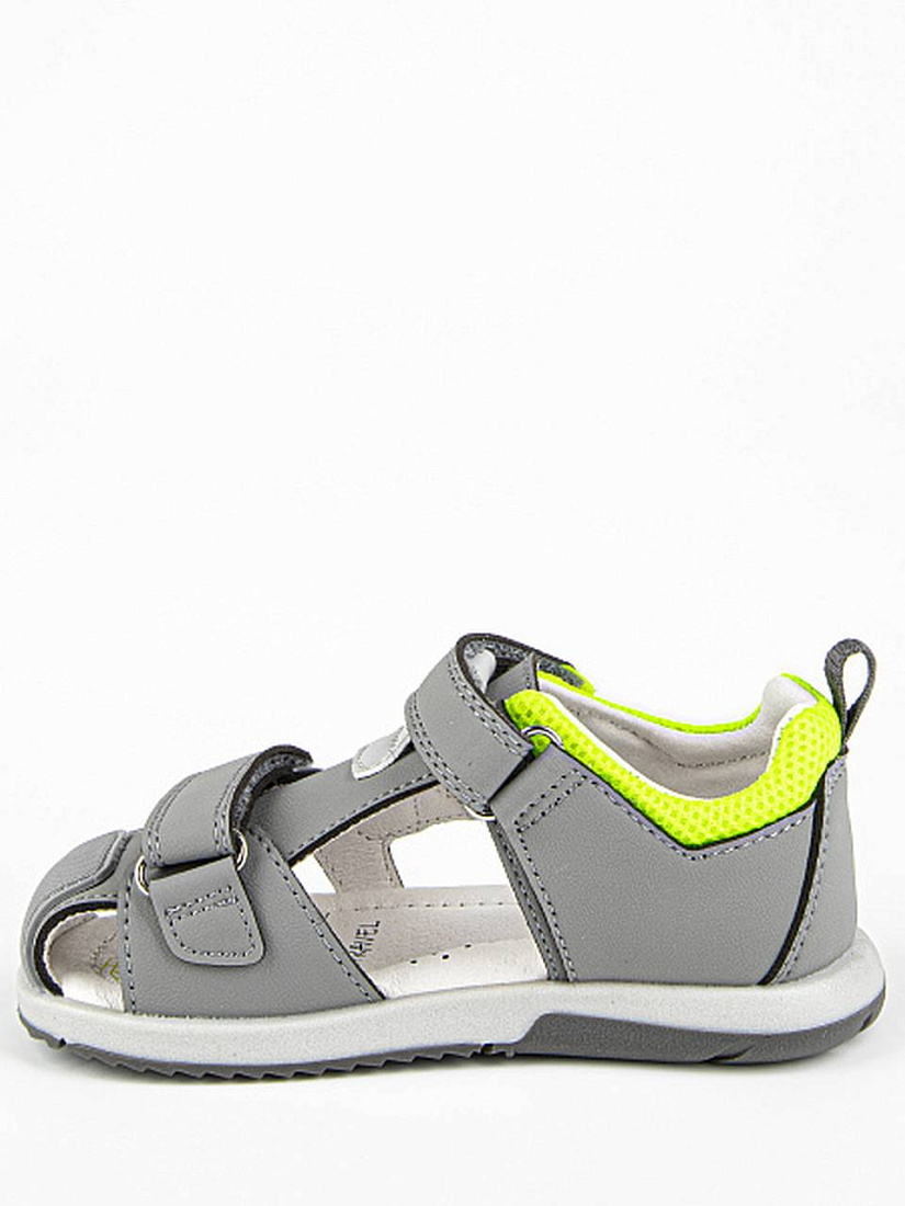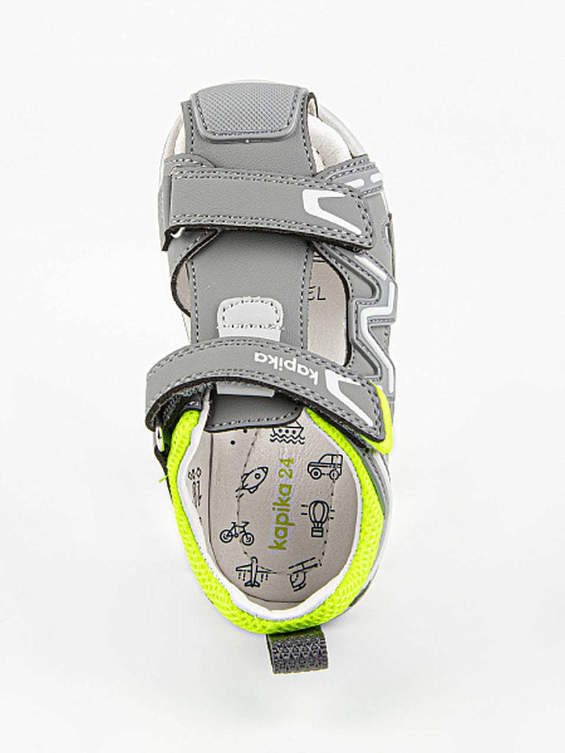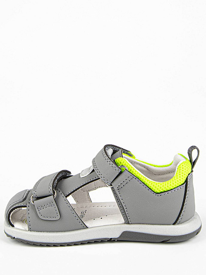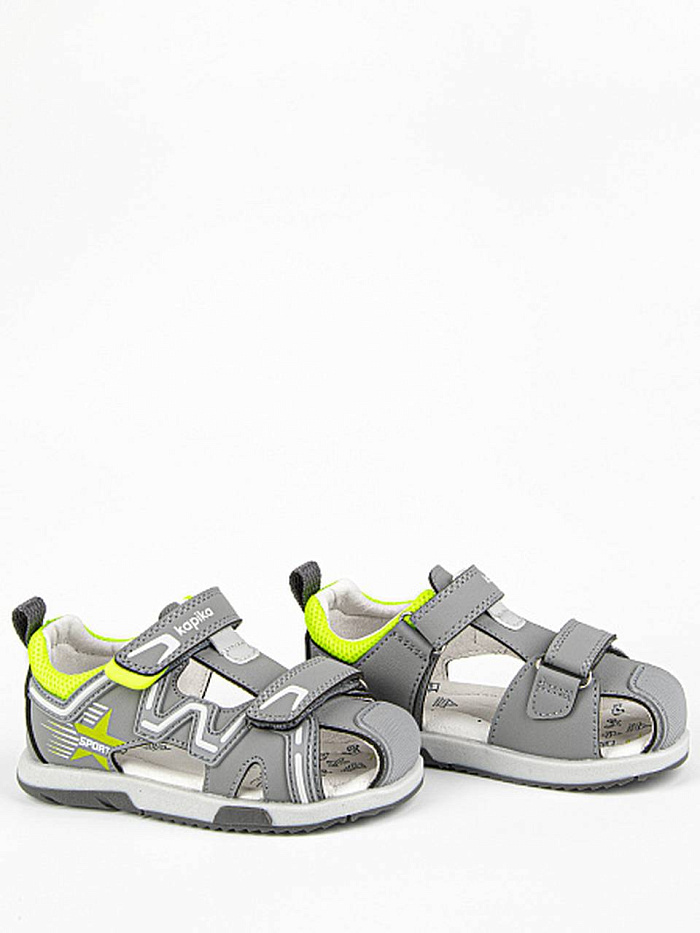 Закрытые сандалии серого цвета из качественной экокожи. Стелька и подкладка выполнены из натуральной кожи. Внутри имеется подсводник, который поддерживает продольный свод стопы и обеспечивает правильное положение ноги ребенка при ходьбе. Надежная подошва из термоэластопласта защищает от неровностей, отличается долговечностью и устойчивостью к износу.