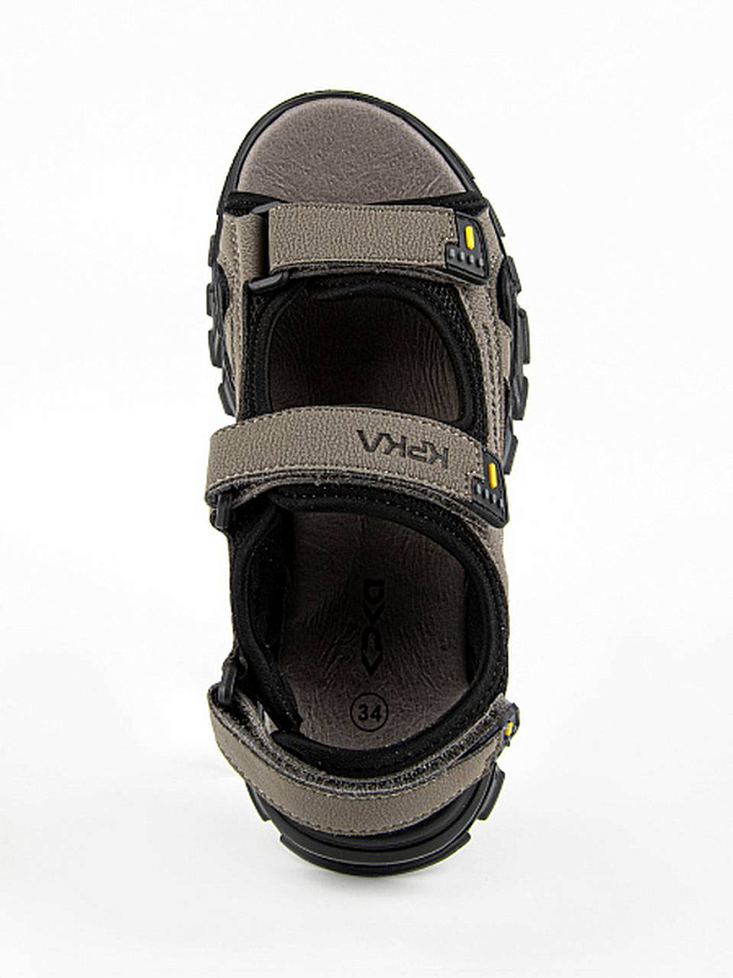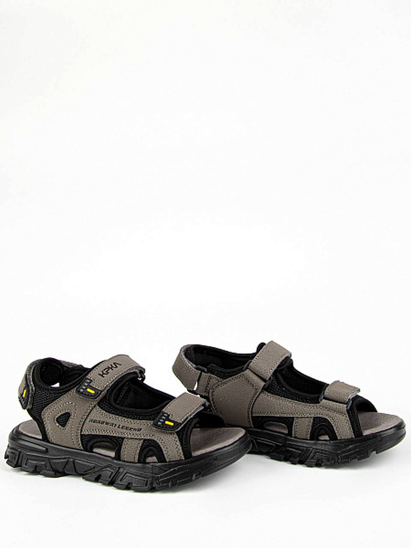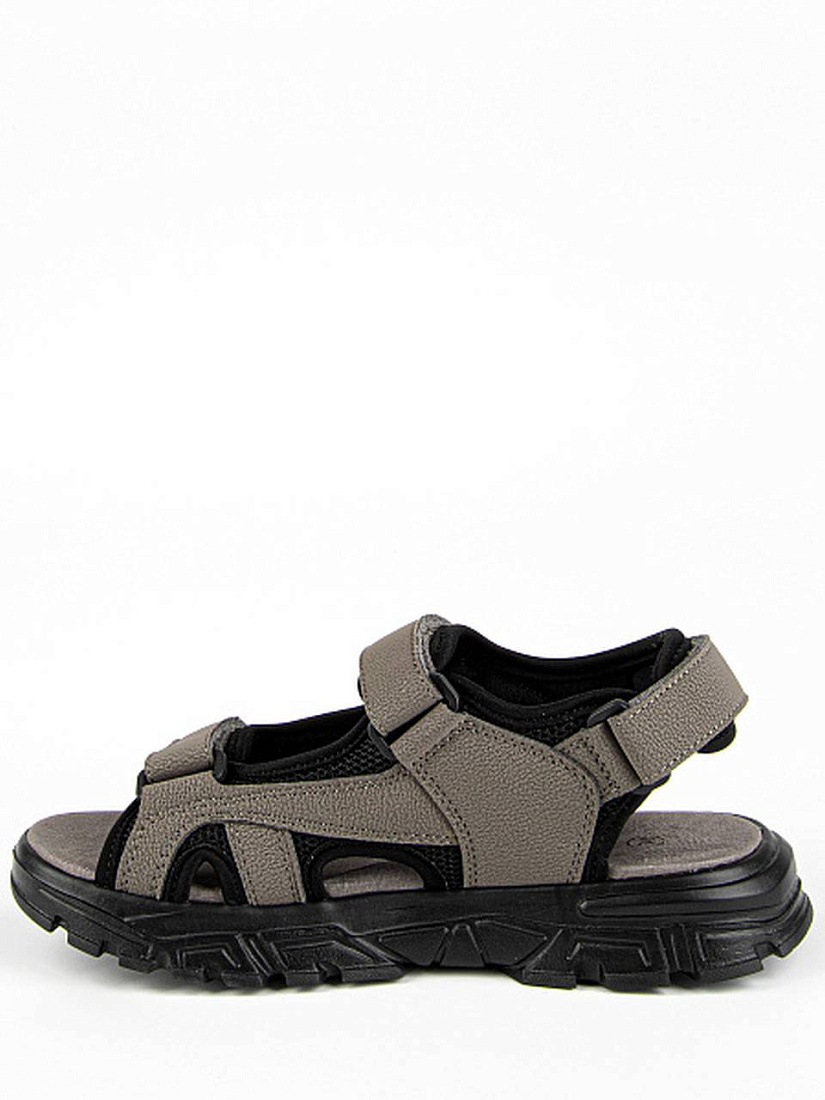 Удобные сандалии серо-черного цвета в спортивном стиле. Верх выполнен из комбинации прочного текстиля и экокожи. Подкладка текстильная с добавлением хлопка. Стелька выполнена из натуральной кожи. Легкая амортизирующая подошва из ЭВА придаст легкости при ходьбе.