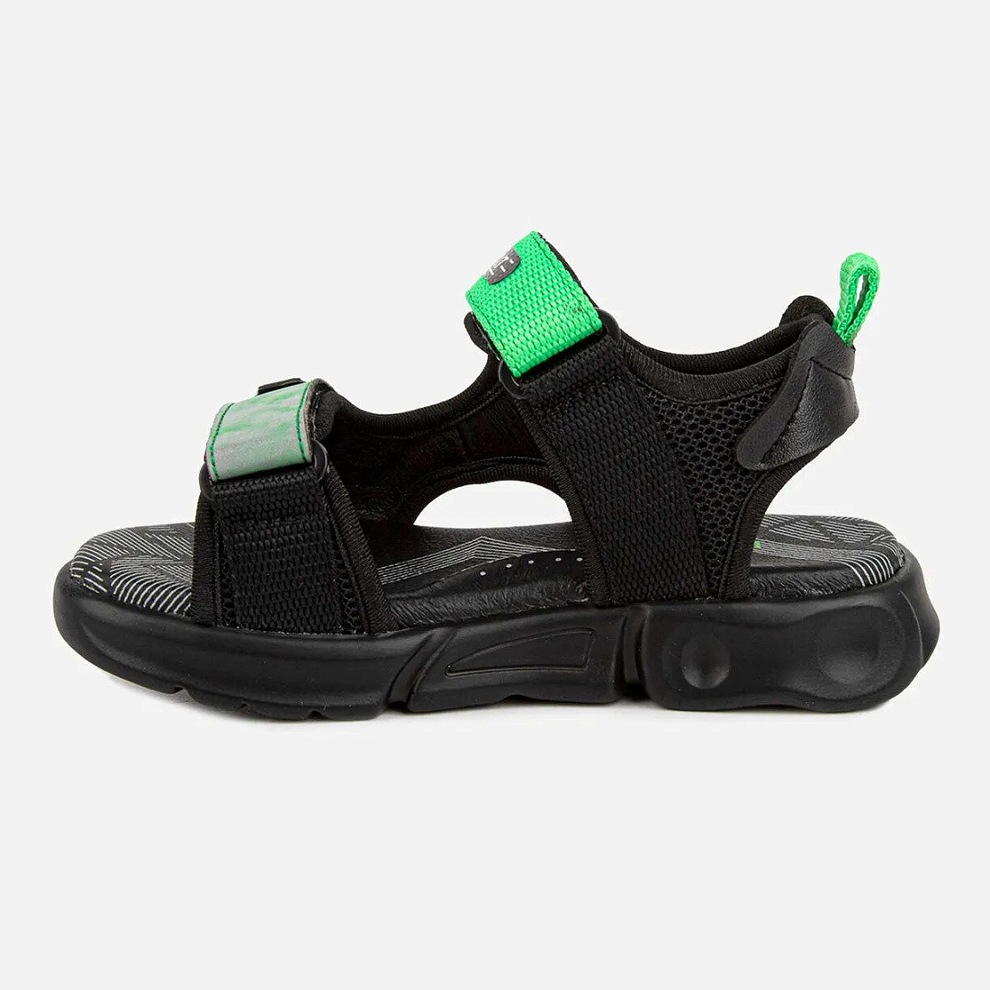 Открытые модные босоножки на спортивной подошве понравятся каждому мальчишке. Материал верха удачно сочетает в себе текстиль и искусственный материал. Две липучки помогут отрегулировать посадку по ноге, а подкладка и стелька из натуральной кожи обеспечат комфортную носку.Подошва из полиуретана легкая и гибкая, а также имеет отличную амортизацию.