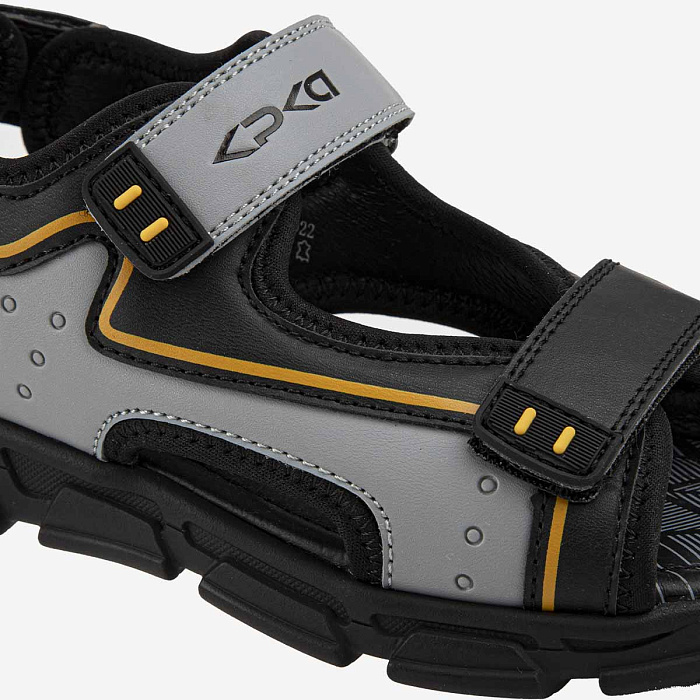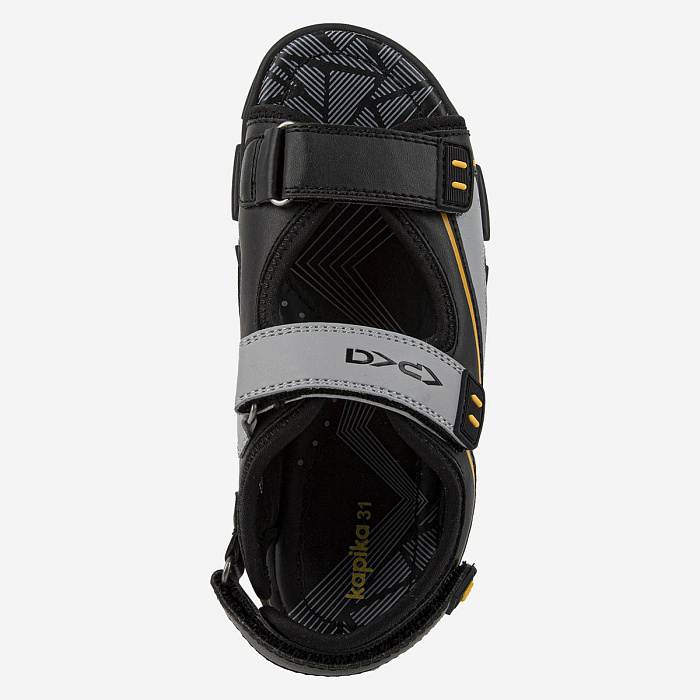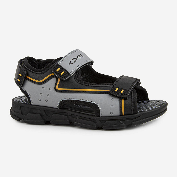 Открытые модные сандалии на спортивной подошве понравятся каждому мальчишке. Материал верха сочетает в себе экокожу и текстиль. Липучки помогут отрегулировать посадку по ноге, а подкладка и стелька из натуральной кожи обеспечат комфортную носку.Долговечная ТЭП подошва продлевает срок службы обуви.