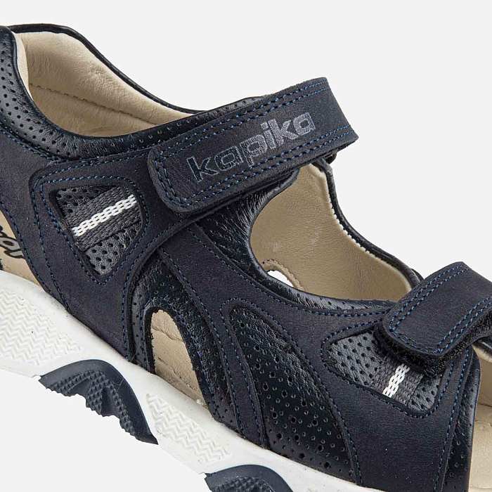 Данные сандалии являются отличным выбором для мальчика, поскольку они выполнены из натуральной кожи и имеют жесткий задник и подсводник для правильной фиксации стопы. Подкладка и стелька из натуральной кожи обеспечивают комфорт при ношении в течение всего дня. Застежки на липучках позволяют регулировать обувь по полноте, а долговечная подошва из ТЭП продлевает срок службы изделия. Эти сандалии прекрасно подойдут как для повседневной носки, так и для занятий спортом на свежем воздухе.