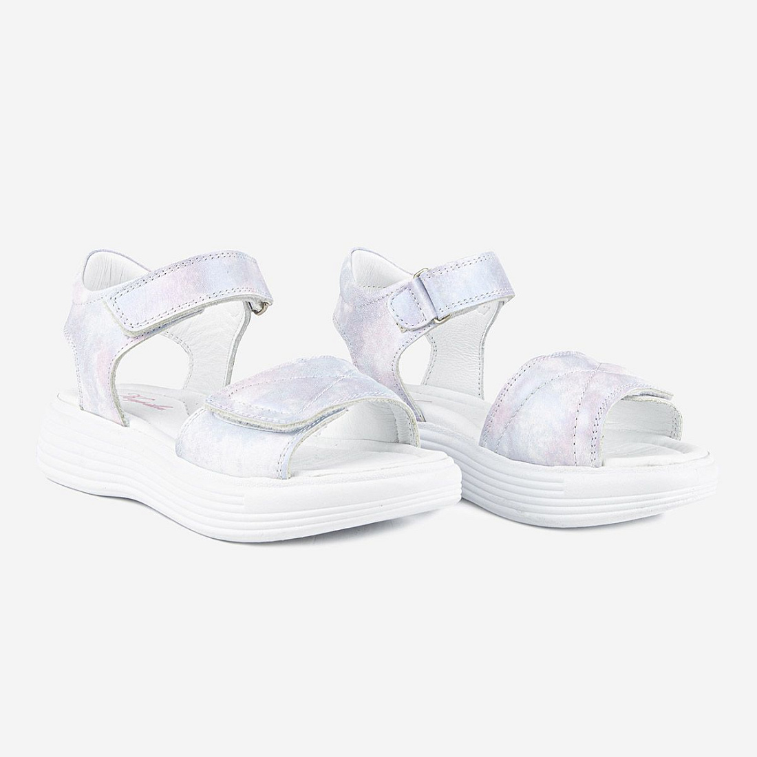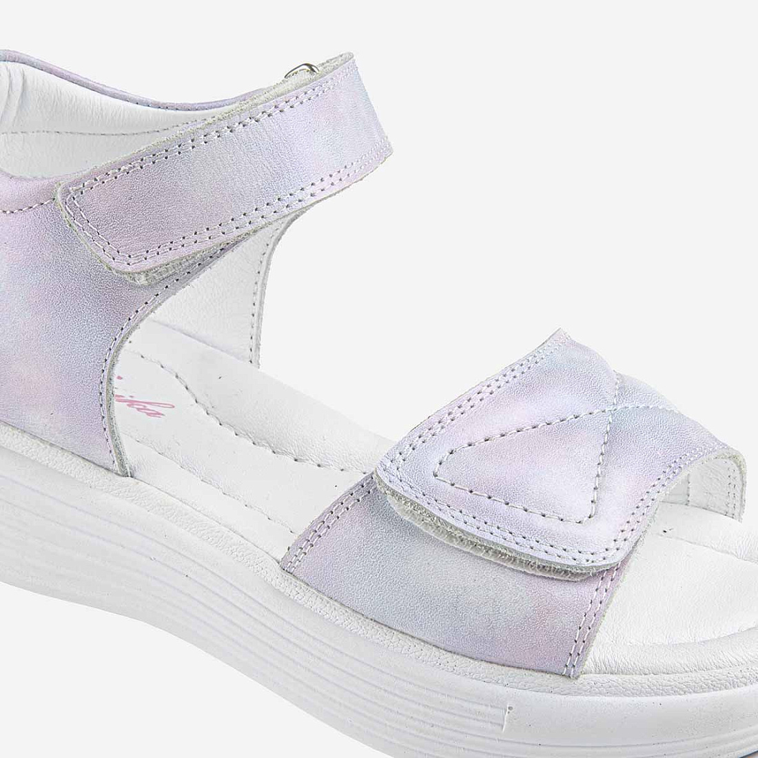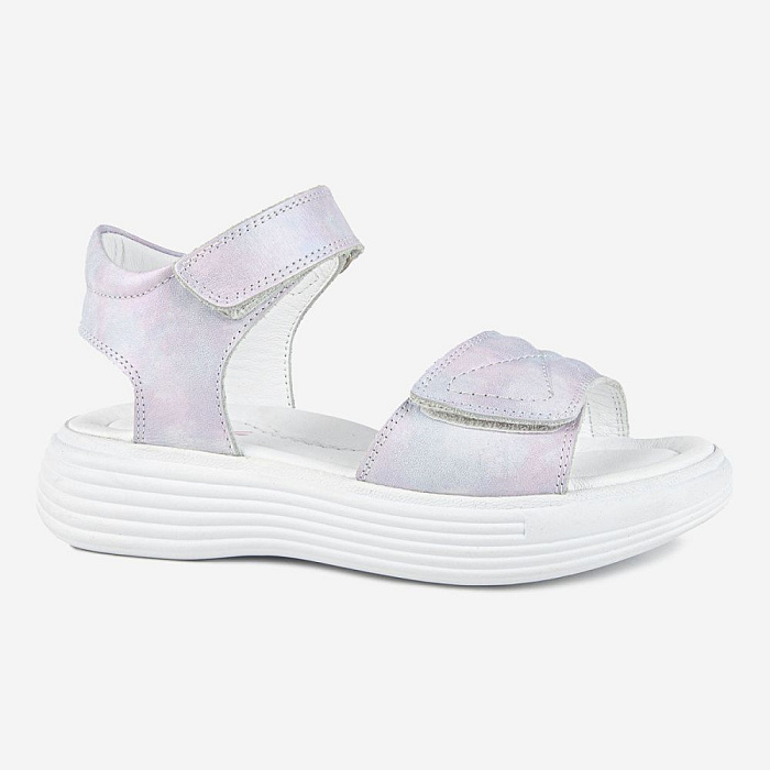Сандалии для девочки изготовлены из натуральной кожи (верх, подкладка и стелька). Сандалии имеют жесткий задник и подсводник для поддержки и формирования правильной формы стопы. Подошва произведена из термопластичной резины (TPR), что обеспечивает долговечность и хорошее сцепление с поверхностью.
