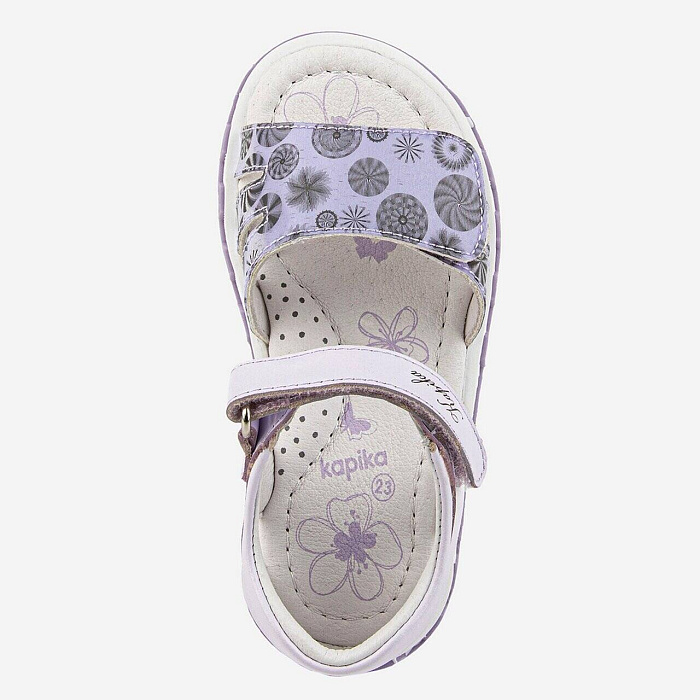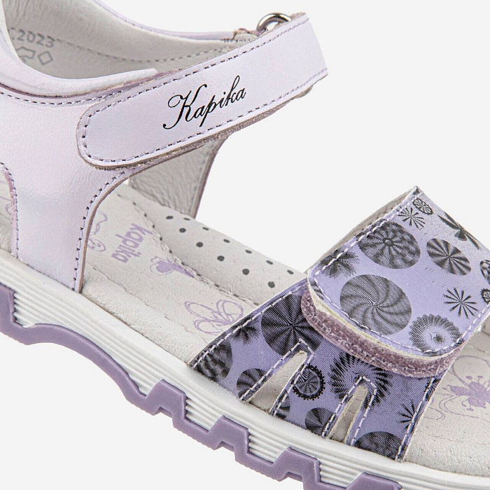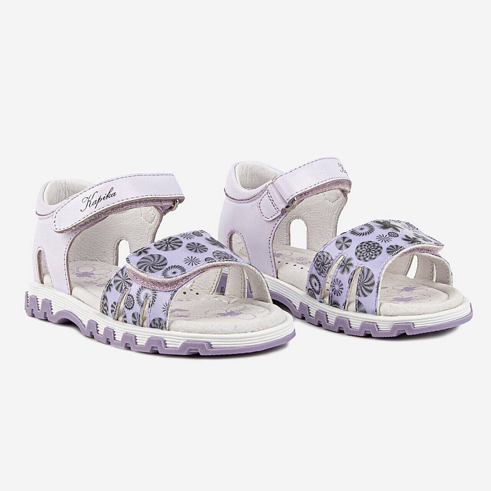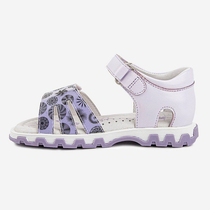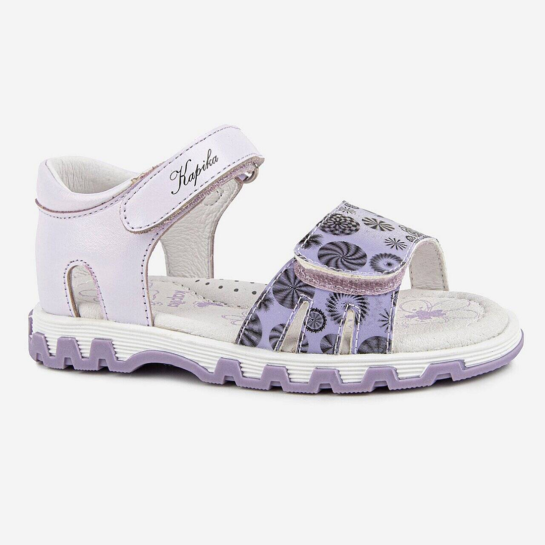 Сандалии для девочки с комбинированным материалом верха. Подкладка и стелька из натуральной кожи. Жесткий задник и подсводник обеспечивают правильную постановку стопы и комфорт. Долговечная ТЭП подошва продлевает срок службы обуви.
