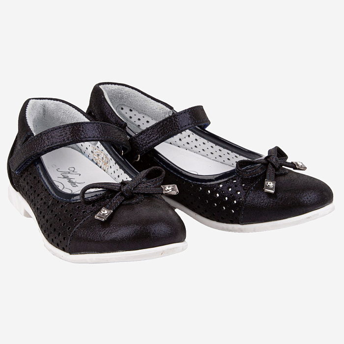 Современные повседневные туфли для девочки из натуральной кожи. Липучка и гибкая износостойкая подошва ТЭП обеспечат комфортную носку.