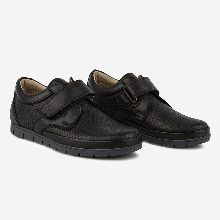 Повседневные полуботинки для мальчика из натуральной кожи обеспечивают правильную циркуляцию воздуха, а наличие подсводника и жёсткого задника создает дополнительный комфорт. Липучка ускоряет и облегчает процесс обувания. Подошва из гибкого износостойкого материала ТЭП.