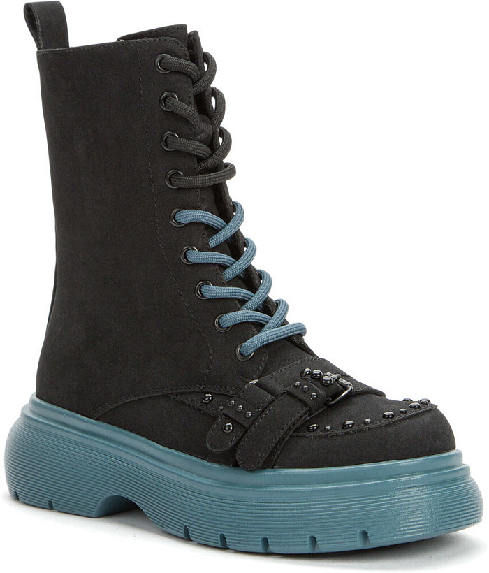 Лаконичные зимние ботинки на тракторной платформе станут главным акцентом вашего образа. Модель из высокотехнологичного черного эконубука на теплой подкладке из натуральной шерсти дополнена функциональной шнуровкой. Застежка-молния помогает быстро обуваться. Нескользящая морозостойкая подошва с амортизацией снимает нагрузку со стопы в течение дня.