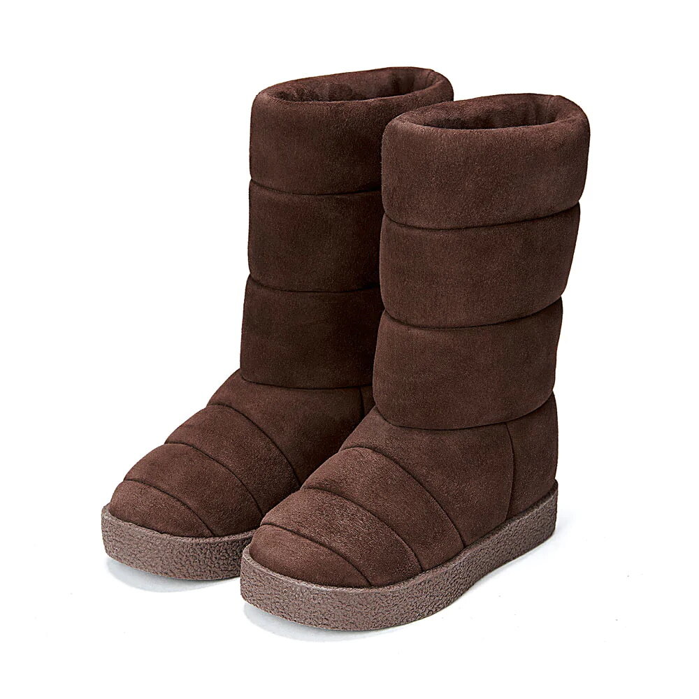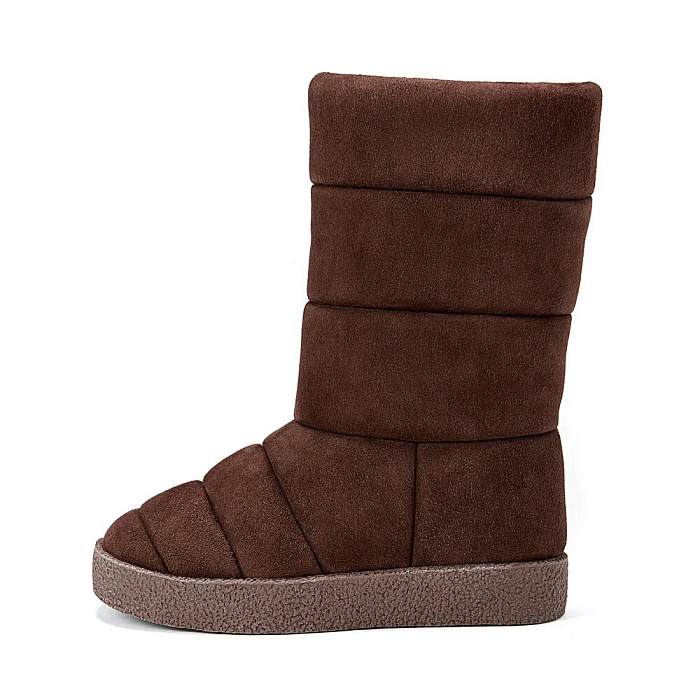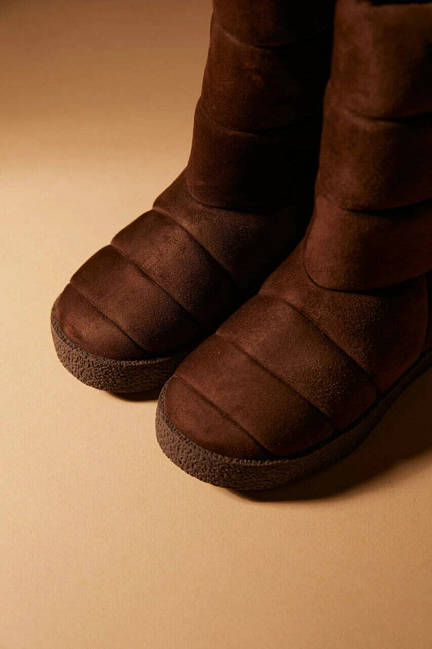 Новое прочтение всеми любимых "дутых" сапог в шоколадной замше на толстой подошве контрастного песочного оттенка. Самые теплые, легкие и удобные зимние сапоги, которые вы когда-либо встречали! Заправляйте в них джинсы, узкие брюки и легинсы и гуляйте целыми днями напролет!