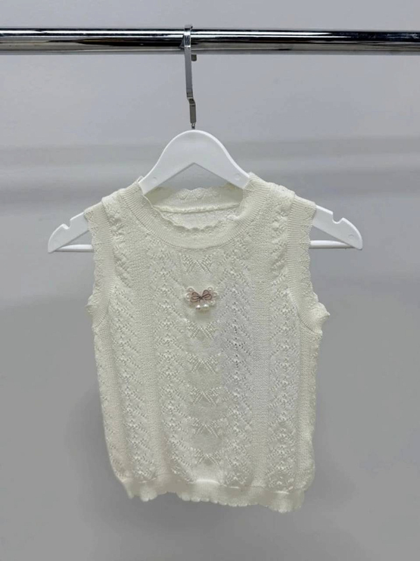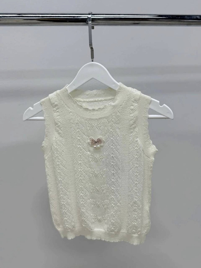 Блузка для девочки выполнена из мягкого трикотажного материала, который приятен к телу и хорошо держит форму. Белый цвет делает изделие универсальным, подходящим как для повседневных образов, так и для праздничных мероприятий. На передней части изделия выделяется изящная декоративная деталь — маленький бантик с нежным блеском, что придает изделию дополнительную привлекательность и делает его интересным для ребенка. Трикотажная текстура блузки украшена оригинальным узором, который визуально добавляет объема и стиля. Круглый вырез аккуратно обработан, что обеспечивает комфорт при носке. Отсутствие рукавов делает модель удобной для активных игр и легкой смены одежды, а также позволяет свободно сочетать ее с различными элементами гардероба — юбками, брюками, сарафанами. Эластичная резинка по низу изделия обеспечивает хорошую посадку, не сковывая движения. Изделие подходит для теплого времени года и легко сочетается с различными аксессуарами.