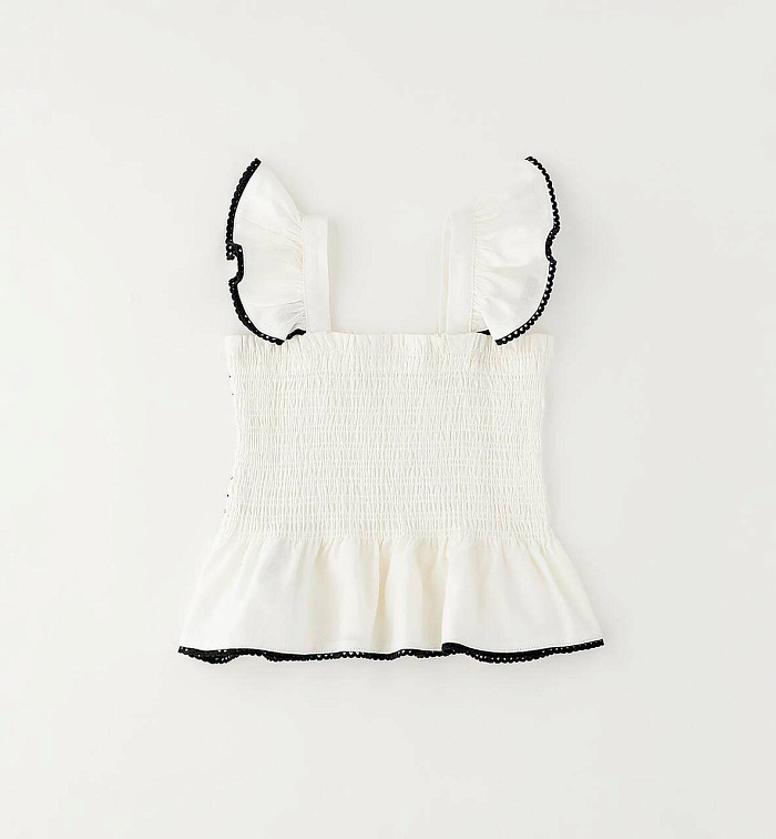 Блузка Sarabanda для девочек из вискозы и льна, украшенная вышивкой и кружевом