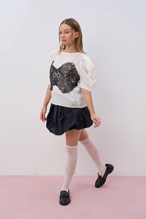 Блузка экрю для девочки — это изысканный элемент гардероба, который подчеркнет нежность и утонченность образа. Она выполнена в элегантном светлом оттенке, идеально подходящем для различных мероприятий и ежедневного использования. Материал приятен на ощупь, обеспечивает комфорт на протяжении всего дня. Благодаря аккуратному крою изделие гармонично сочетается с юбками, брюками или джинсами. Детали оформления придают особое очарование, а универсальный стиль дает возможность использовать изделие как для школы, так и для прогулок. Воздушная фактура и гладкая поверхность позволяют сохранить опрятный внешний вид даже при интенсивной носке. Эта модель станет удачным выбором для создания стильного и практичного гардероба. Простой уход и современный дизайн делают вещь отличным дополнением к базовым образам. Блузка понравится тем, кто ценит сочетание качества и эстетики. Элементы декора не перегружают внешний вид, предоставляя ощущение легкости и свободы движений.