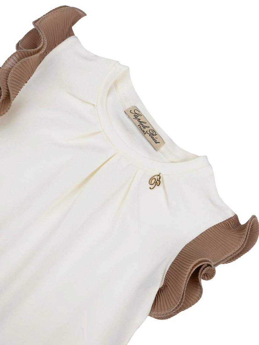 Блузка для девочки выполнена в элегантном стиле и отлично подходит для повседневных и праздничных образов. Модель в оттенке экрю смотрится нежно и современно, а акцентная отделка на рукаве в цвете какао добавляет изюминку. Гофре делает рукав визуально интереснее, придает изделию легкость и утонченность. Такой вариант подходит для учебы, прогулок, семейных мероприятий и других случаев, когда важен аккуратный внешний вид. Благодаря продуманному дизайну, блузка легко сочетается с юбками, брюками или сарафанами, создавая стильные комплекты для девочки. Ткань приятная на ощупь, что обеспечивает комфорт в течение всего дня. Отделка на рукаве в виде гофре гармонично подчеркивает общий вид изделия и делает его более оригинальным. Блузка экрю с элементами какао универсальна, подходит для разных сезонов и не выходит из моды. Гофре на отделке добавляет динамику и делает вещь уникальной.