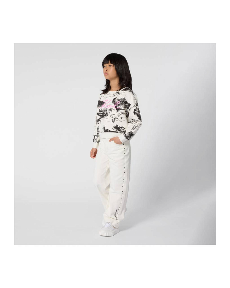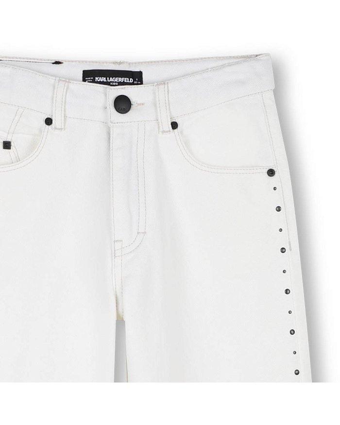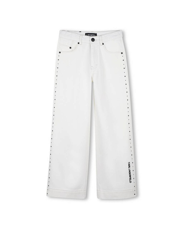Брюки для девочки выполнены из плотного материала, который обеспечивает комфорт при носке и практичность в уходе. Модель представлена в светлом оттенке, что придает образу свежесть и универсальность. Прямой крой гарантирует свободу движений и отлично сочетается с различными элементами гардероба. На брюках для девочки предусмотрены стандартные боковые и задние карманы, что добавляет функциональности. Дизайн украшен аккуратными металлическими заклепками по боковым швам, создавая современный акцент и подчеркивая стильный внешний вид изделия. Застежка на пуговицу и молнию обеспечивает надежную фиксацию. Ткань гладкая, с легким матовым эффектом, приятна на ощупь и устойчива к износу. Контрастная надпись на нижней части одной из брюк добавляет оригинальности и индивидуальности образу для девочки. Универсальный фасон позволяет носить брюки в повседневной жизни, на прогулках, в школе или на мероприятиях.