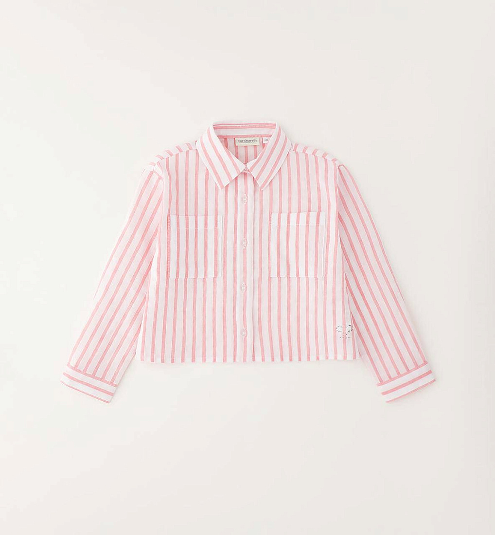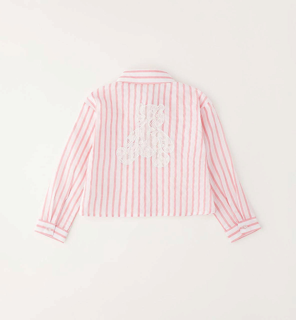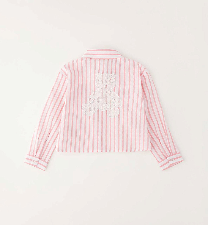Рубашка из денима в полоску с длинными рукавами Sarabanda для девочек. Укороченная модель с застежкой на пуговицы и кружевной аппликацией сзади.