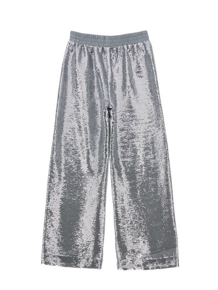 Стильные брюки-палаццо Monnalisa мягкого кроя, украшенные пайетками.