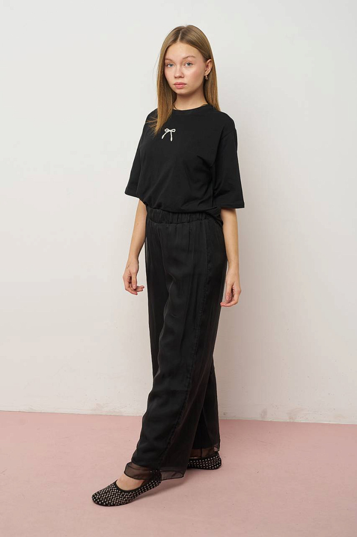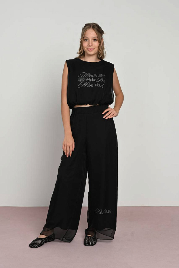 Шифоновые брюки черного цвета созданы специально для девочки, которая ценит комфорт и стиль. Мягкая ткань обеспечивает легкость и воздушность при носке, позволяя двигаться свободно и не перегреваться в теплое время года. Модель идеально подходит для повседневного использования и особых случаев благодаря универсальному оттенку и изящному дизайну. Изделие подчеркивает свободу движений и сочетается с разными элементами гардероба, что делает его практичным решением в разнообразных образах. Брюки выполнены из качественного материала, который не вызывает раздражения и легко ухаживается, что особенно важно для детской одежды. Черный оттенок придает вещи лаконичность и одновременно элегантность, позволяя использовать ее как в повседневных, так и в более официальных нарядах. Такой предмет одежды станет незаменимым элементом в гардеробе каждой девочки, которая ценит удобство и классический стиль.