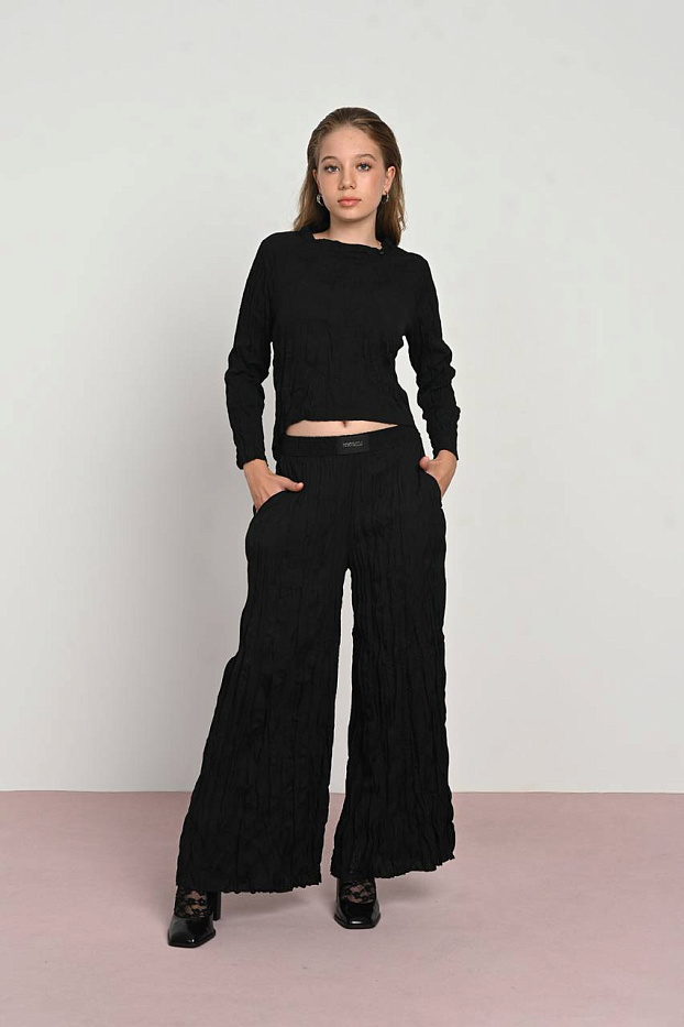 Брюки черные созданы из жатой ткани, что придает изделию необычную текстуру и вид. Модель предназначена для девочки и отлично подойдет для повседневной носки. Материал отличается легкостью и комфортом, обеспечивая свободу движений и удобство в любой ситуации. Особенность ткани позволяет не только выглядеть стильно, но и не требует сложного ухода, сохраняя форму после стирок. Такая вещь легко сочетается с разными элементами гардероба, будь то футболки, свитшоты или рубашки. Брюки из жатой ткани удобно носить в школу, на прогулку или для активного отдыха. Их универсальный черный цвет станет основой разнообразных образов и прекрасно впишется в любой гардероб. Благодаря добротной ткани изделие прослужит долго, оставаясь ярким и привлекательным. Эта модель – практичный выбор для девочки, ценящей качество и комфорт в одежде.