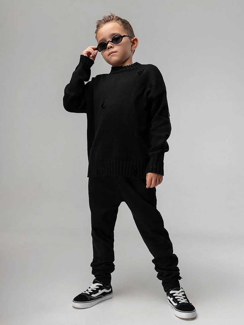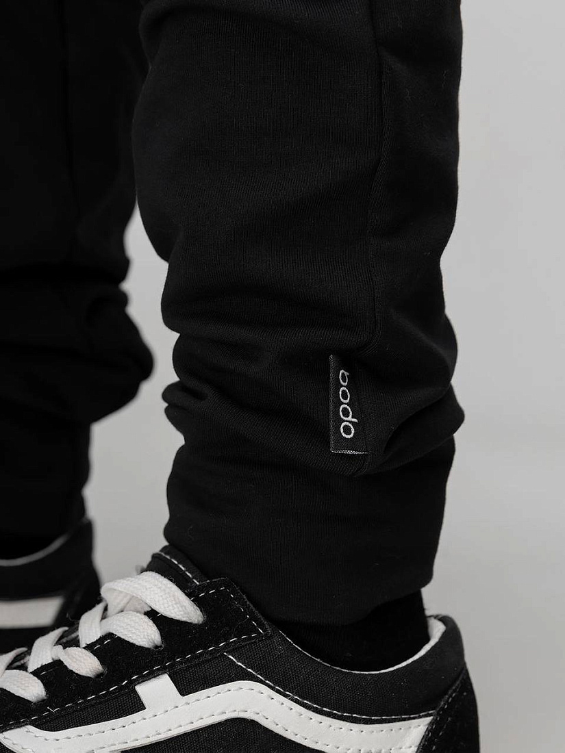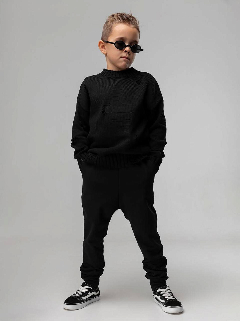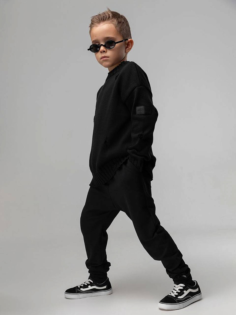 Брюки- джоггеры детские. Детали: полуприлегающий покрой, пояс - эластичная резинка, низ изделия- манжеты, с карманами.