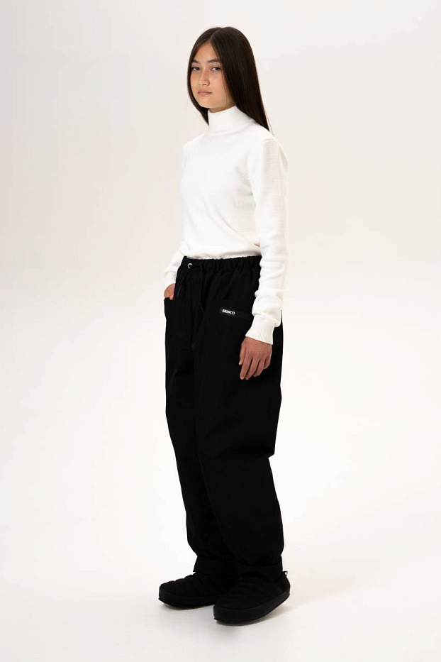 Комфортные утеплённые брюки в плотной матовой водо- и грязеотталкивающей ткани. Удобные боковые карманы. Эластичный пояс со шнурком. Мягкие манжеты внизу брюк.