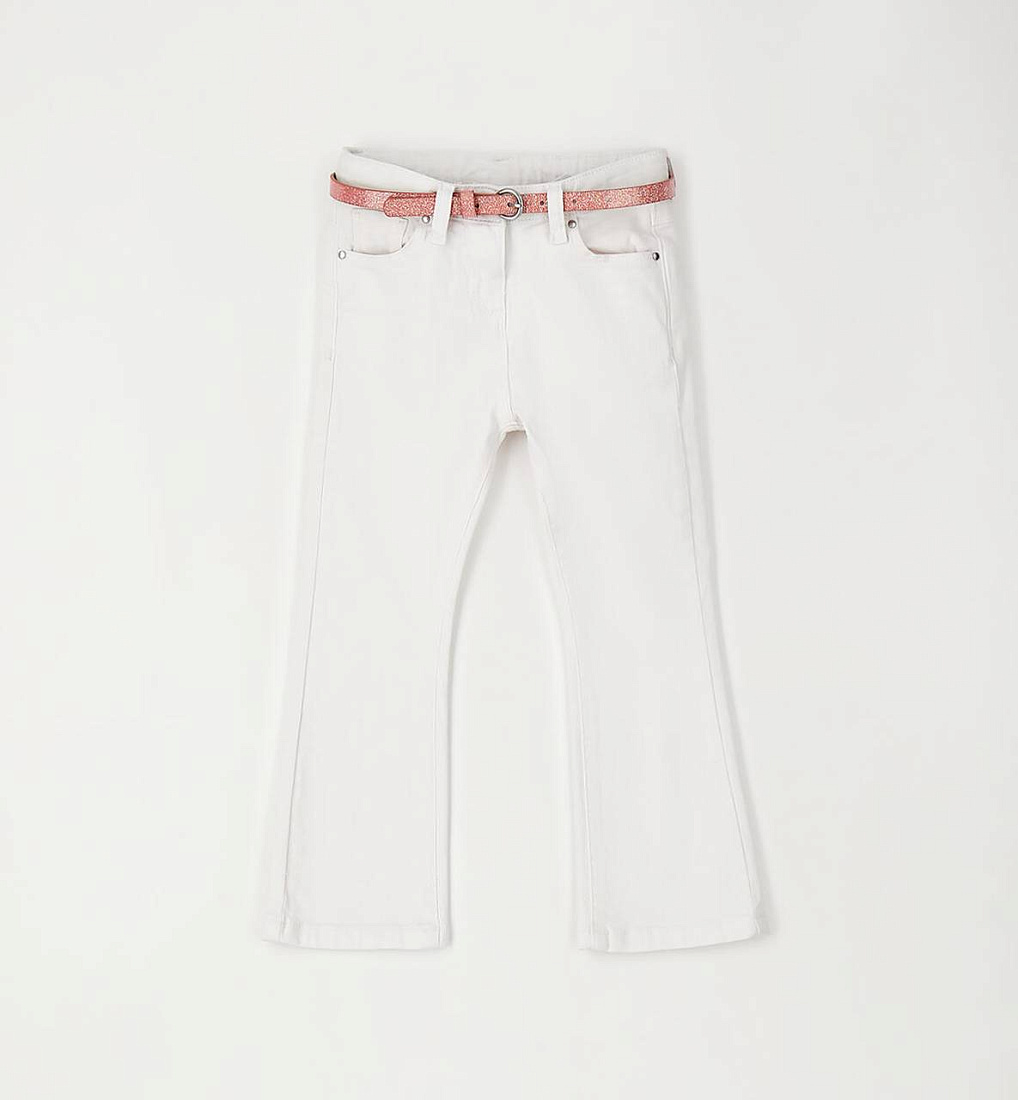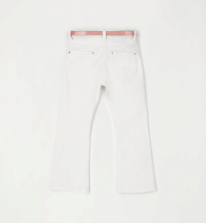 Длинные брюки Sarabanda для девочек из эластичного хлопкового твила. Застежка на молнию и пуговицы. Регулируемая талия с внутренней эластичной петлей. Ремень с блестками в тон.