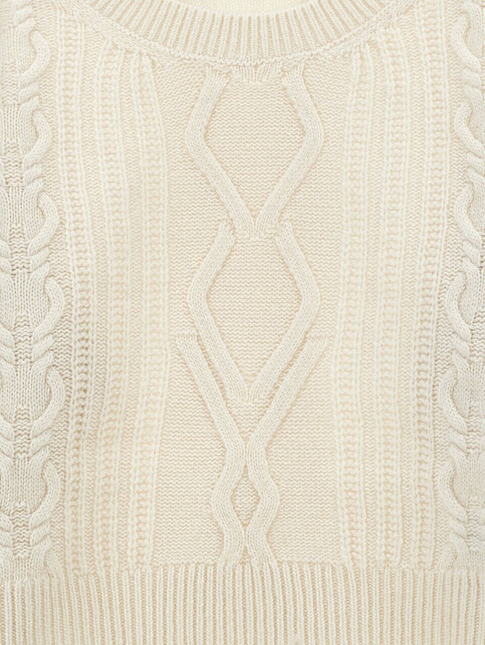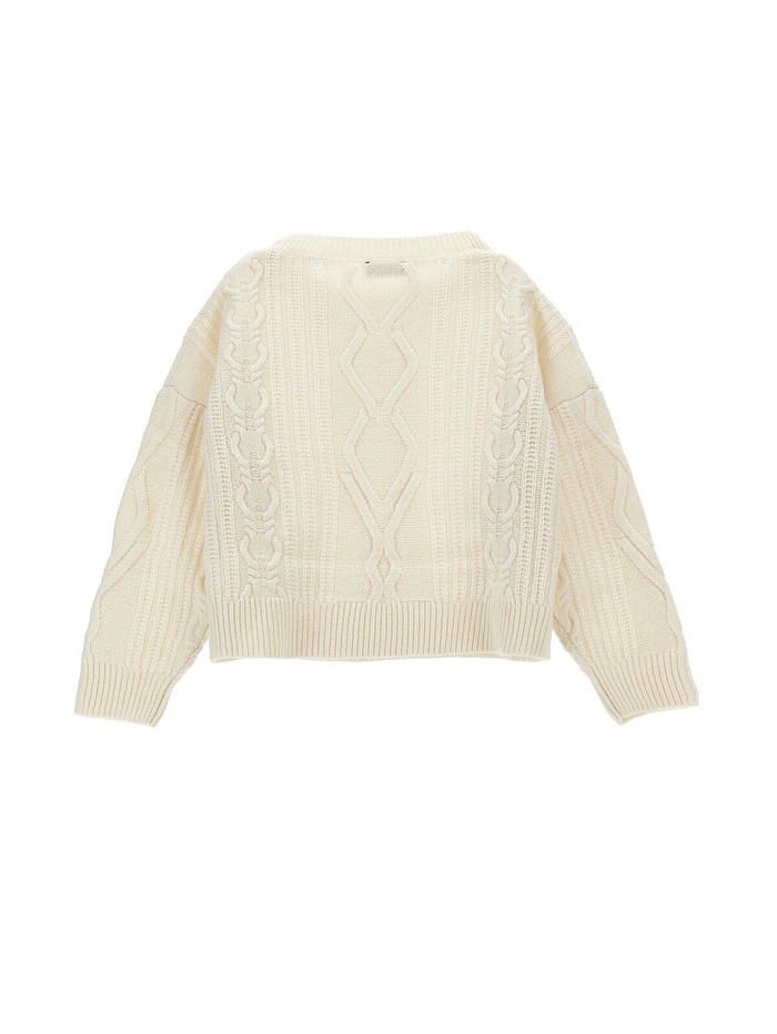 Этот уютный свитер Monnalisa в классическом норвежском стиле, нейтрального цвета, с крупной вязкой и вставками, станет фаворитом среди подростков.