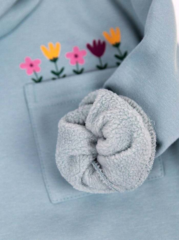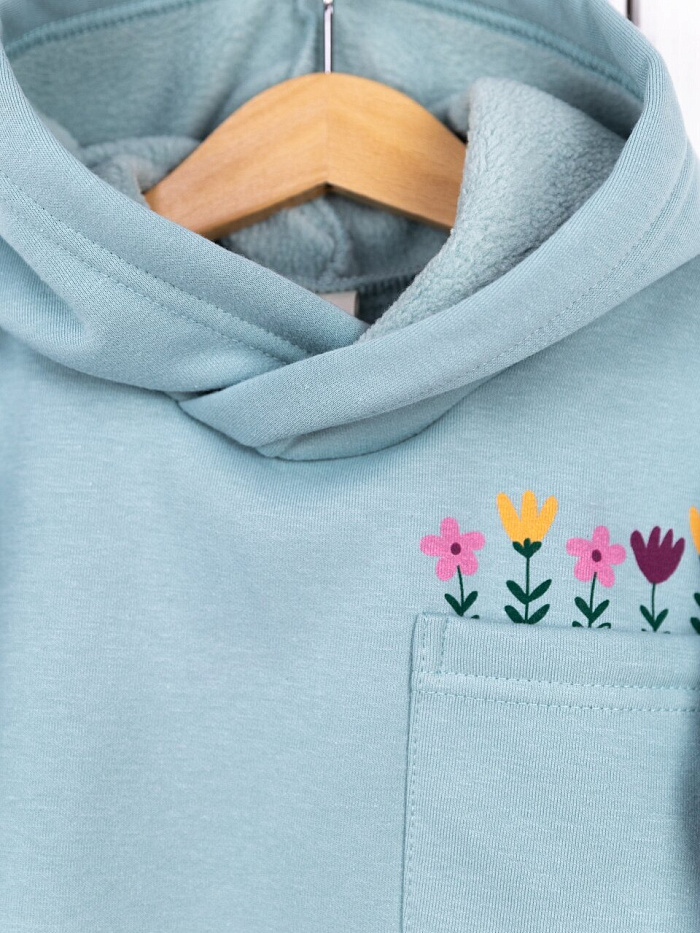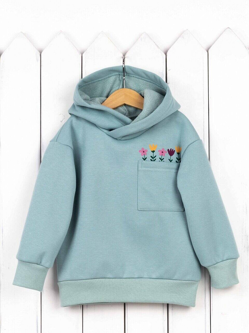 Джемпер для девочки с капюшоном,декорирован кармашком и принтом. Выполнен из футера 3-нитки Soft барашек (65% хлопок, 35% полиэстер).
