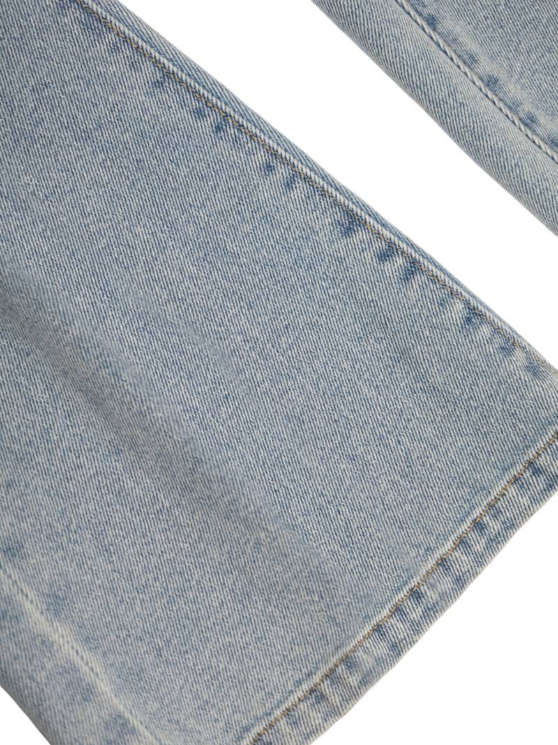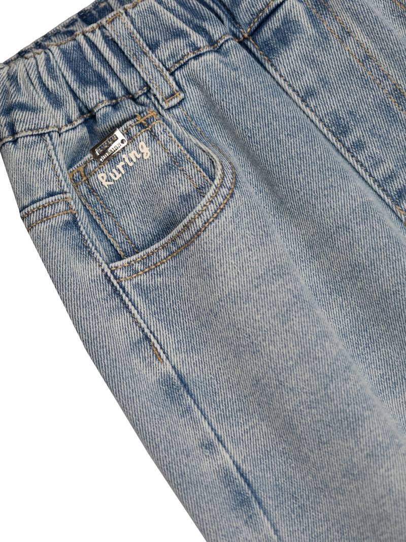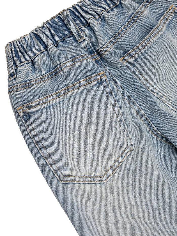 Брюки джинсовые для девочки выполнены из прочного и мягкого денима светло-голубого оттенка. Классический прямой крой с легким расклешением книзу обеспечивает современный и комфортный образ. Эластичный пояс на резинке гарантирует удобную посадку и легкость при переодевании, что особенно важно для активного ребенка. Джинсовые брюки имеют стандартную конструкцию с двумя передними и двумя задними накладными карманами, что добавляет практичности и позволяет хранить небольшие предметы. Материал приятен на ощупь, хорошо держит форму и устойчив к износу. Светлый цвет с мягким эффектом потертостей делает эти брюки универсальными и легко сочетаемыми с различными элементами гардероба для девочки. Качественная строчка по краям карманов и пояса придает изделию аккуратный и завершенный вид. Джинсовые брюки подходят для повседневной носки, прогулок, учебы и активного отдыха, позволяя ребенку чувствовать себя свободно и уверенно.