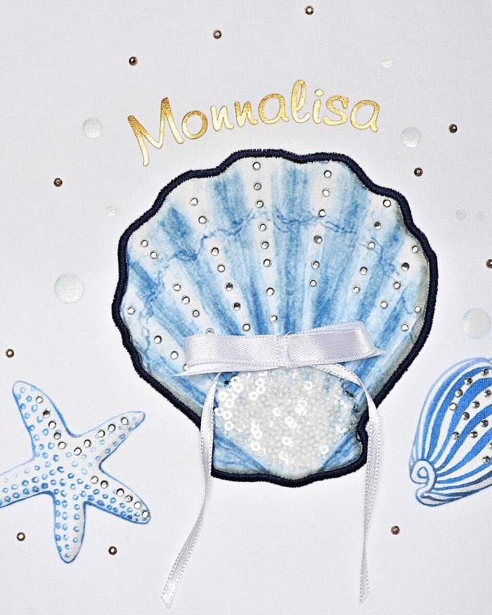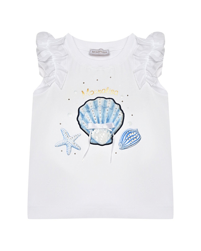 Футболка для девочки MONNALISA с рюшами и принтом "Ракушки"