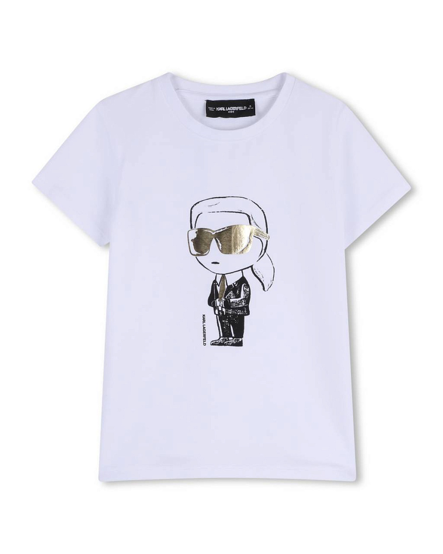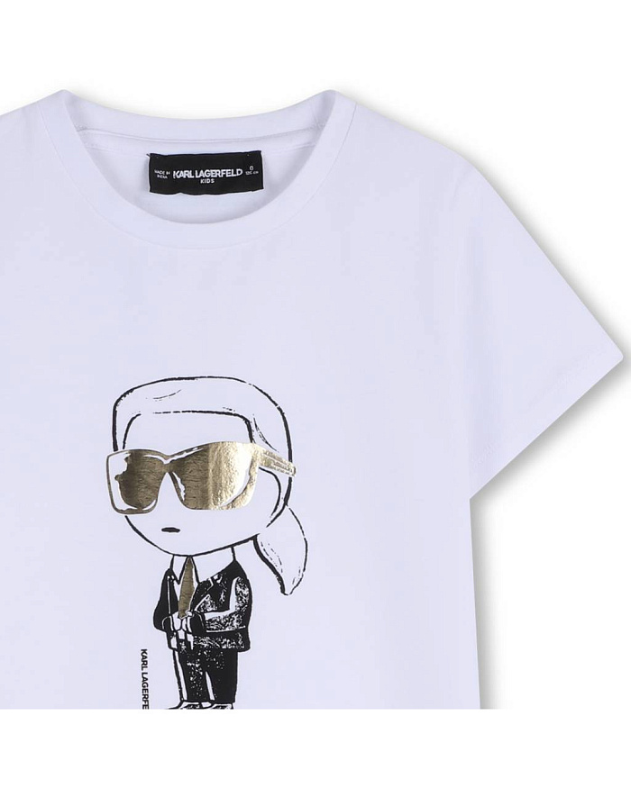 Футболка для девочки выполнена из мягкого материала, который обеспечивает комфорт на протяжении всего дня. Белый цвет визуально освежает образ и легко сочетается с разной одеждой. На лицевой стороне размещен яркий принт с изображением стилизованного персонажа в очках с золотистым блеском, что придает изделию оригинальность и современный стиль. Короткие рукава и классический круглый вырез делают эту футболку универсальной для повседневной носки. Ткань гладкая, приятная на ощупь, хорошо держит форму и не стесняет движений. Принт устойчив к выцветанию, а блестящие элементы добавляют привлекательности, подчеркивая индивидуальность. Такая футболка для девочки подойдет как для прогулок, так и для учебных занятий или встреч с друзьями. Качественный пошив и аккуратные швы гарантируют долговечность изделия. Минималистичный дизайн легко впишется в любой гардероб, а акцент в виде блестящих очков добавляет модный акцент.