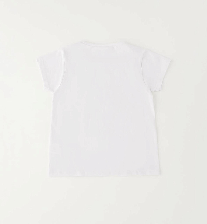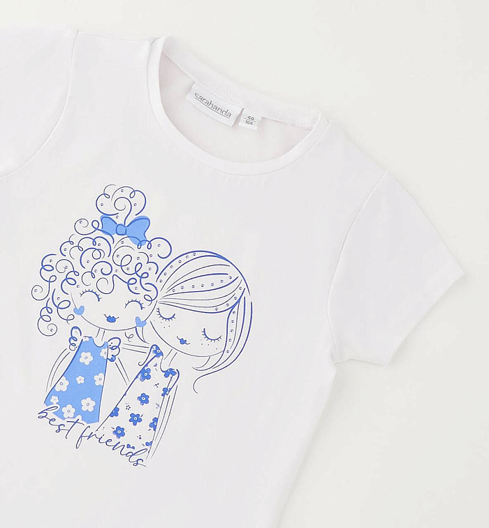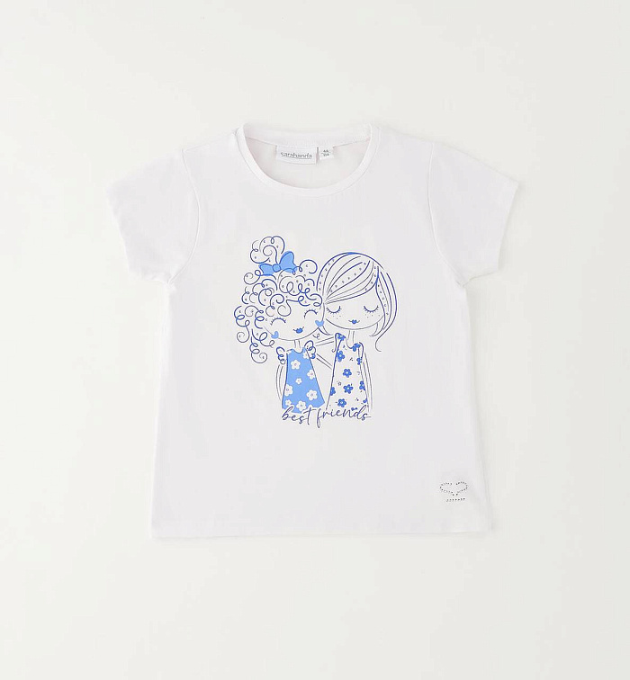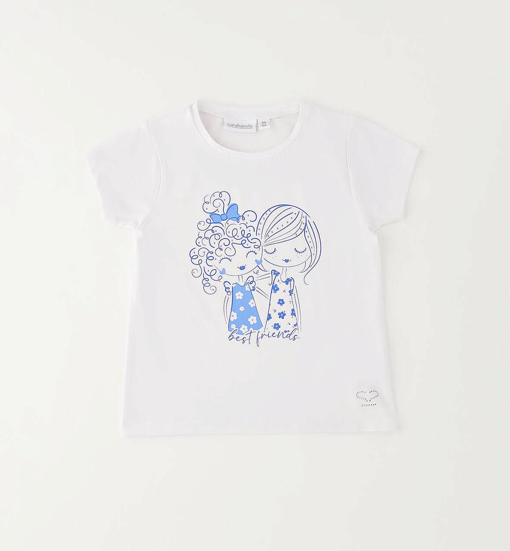 Футболка для девочек Sarabanda из эластичного хлопкового джерси с принтом из страз. Логотип со стразами внизу. Застежка на спине для размеров до 3 лет.