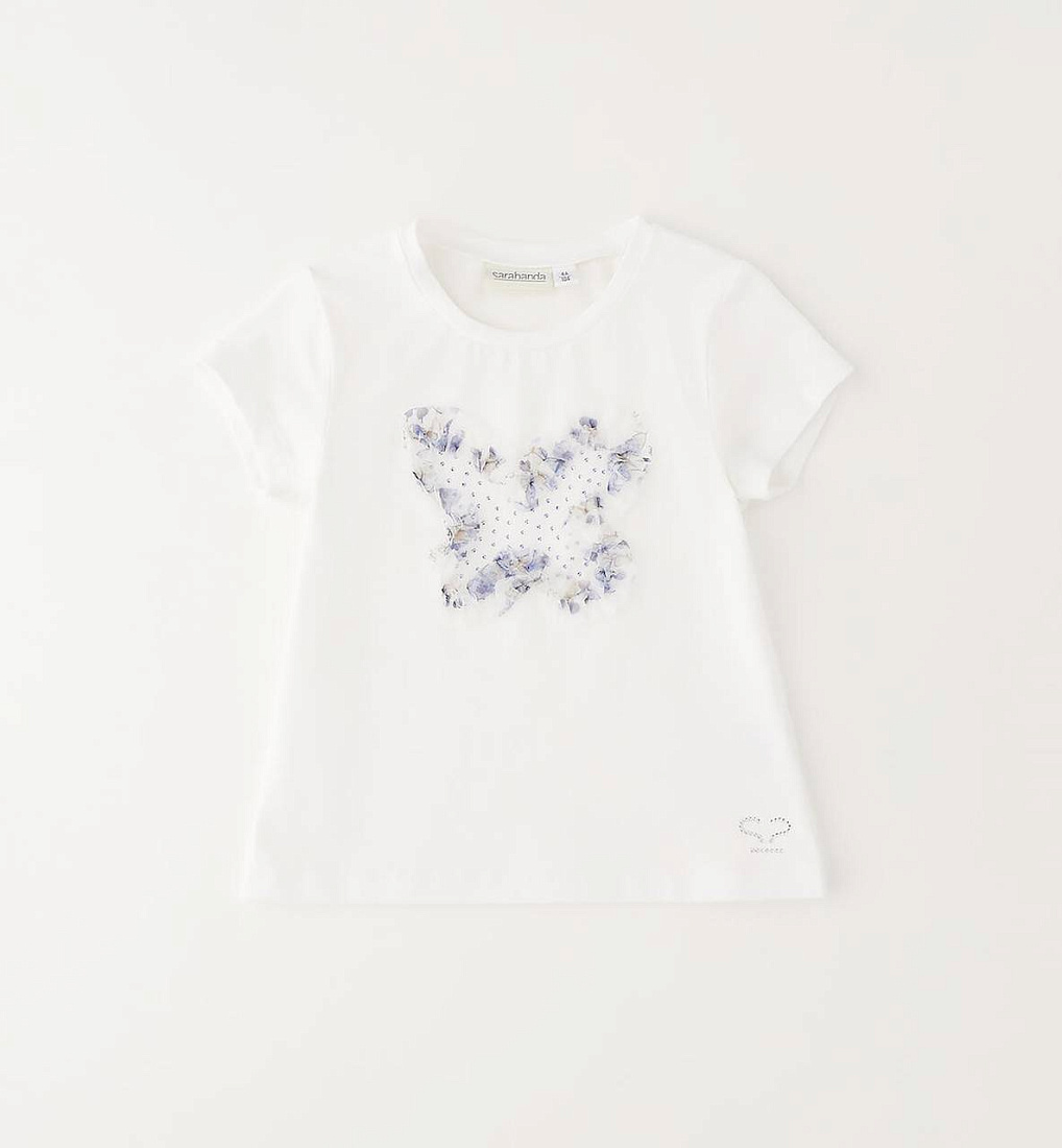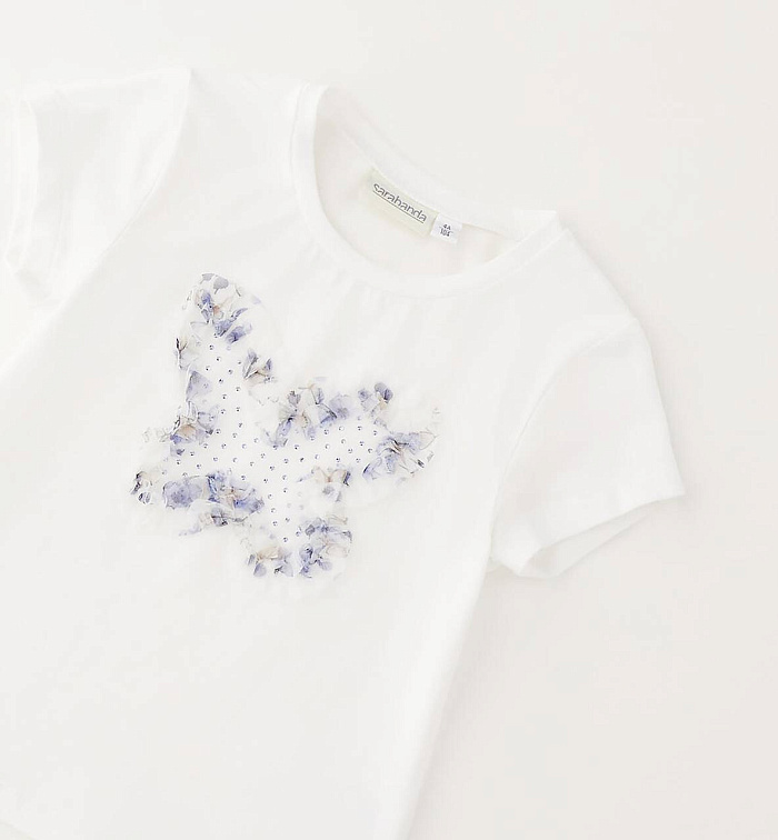 Футболка Sarabanda для девочек из эластичного хлопкового джерси с тюлем и стразами